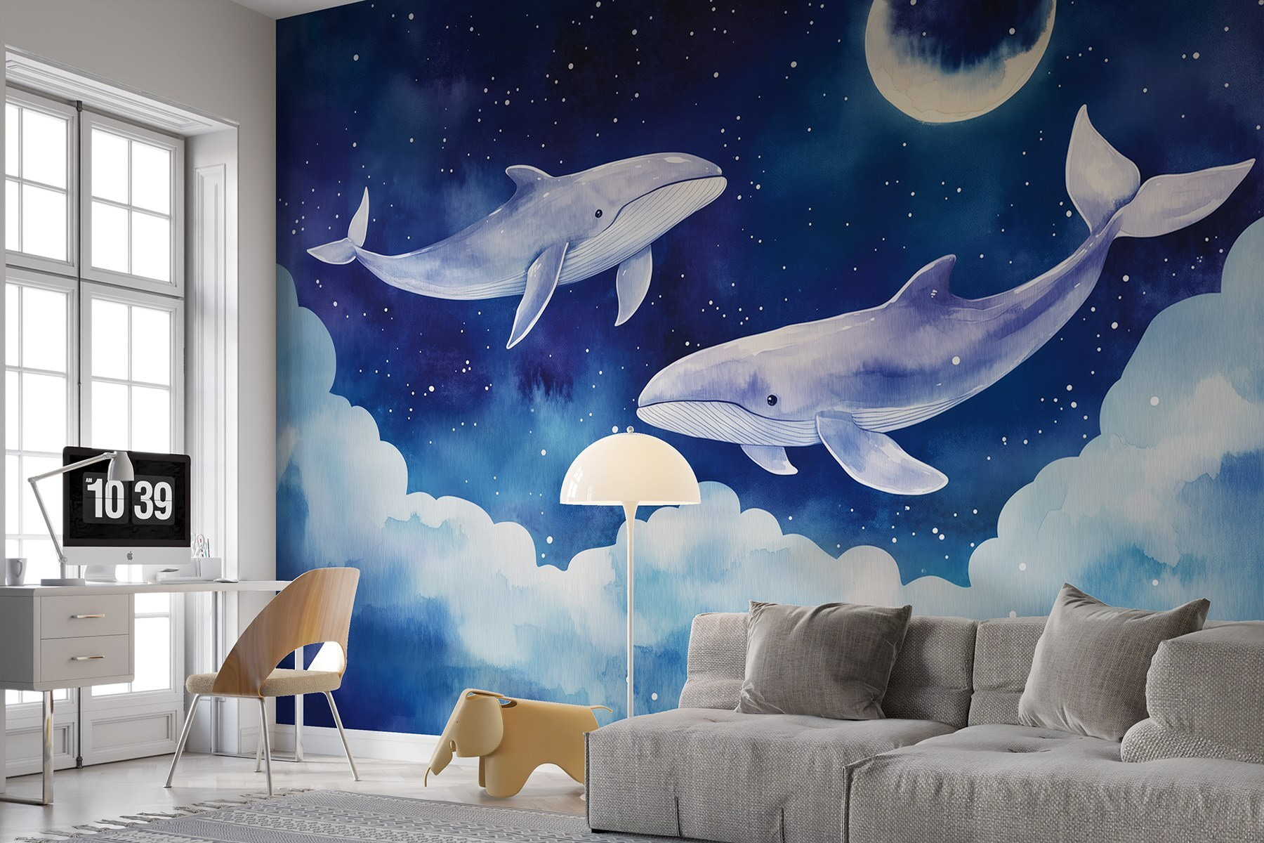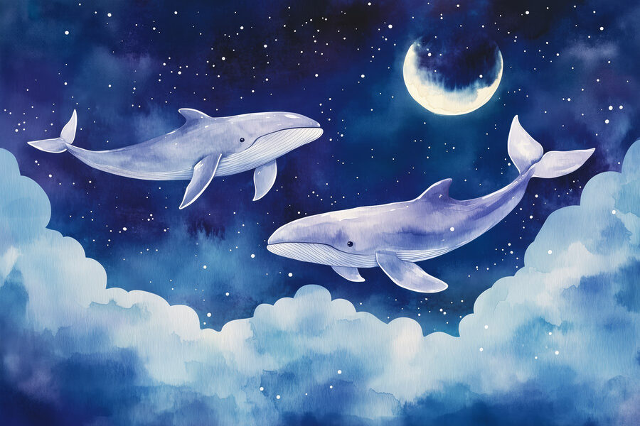 Transformez n’importe quel espace en un lieu de rêve avec la peinture murale “Deux baleines dans le ciel”. Imaginez : de gentils géants glissant dans une étendue crépusculaire, entourés de nuages étoilés et d’une lune bienveillante. C’est comme si vous invitiez un morceau de l’océan dans votre maison, sans l’odeur des algues. Parfaite pour les ambiances de bord de mer ou pour un coin douillet, cette peinture murale apporte une touche de fantaisie et de sérénité, ce qui en fait un sujet de conversation pour les invités. Imaginez que vous sirotiez un café en regardant ces baleines, en vous demandant à quoi elles rêvent. Une touche enchanteresse pour tous ceux qui recherchent un peu de magie dans leur décor !