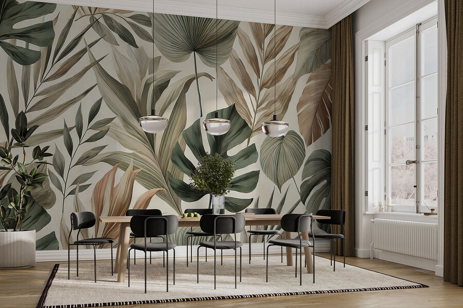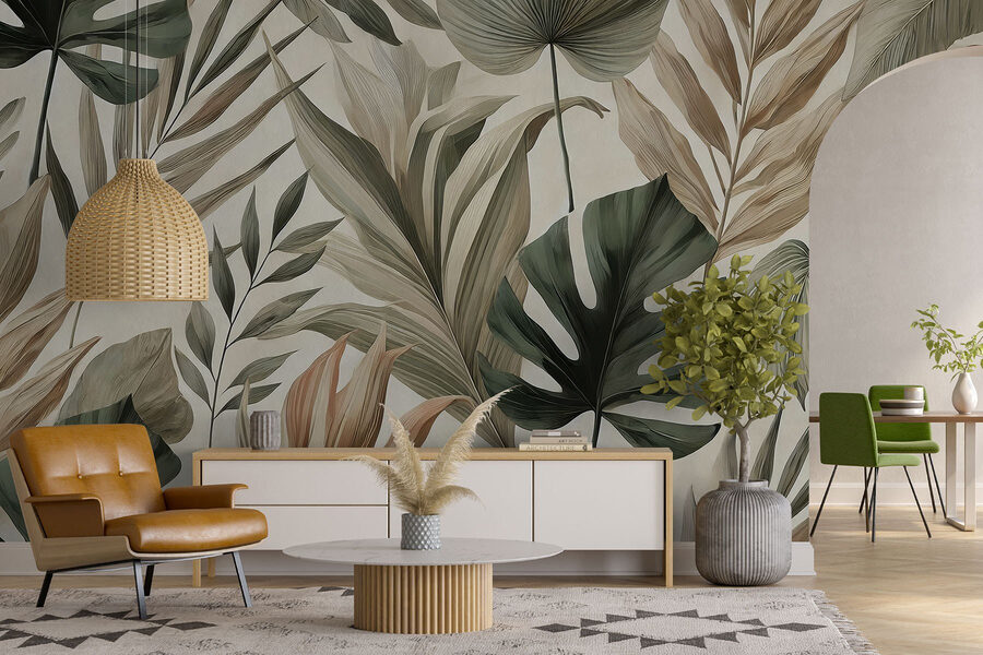 Transformez n’importe quelle pièce en oasis tropicale grâce à cette superbe peinture murale composée de feuilles luxuriantes et de tons terreux. Imaginez que vous vous réveillez et que vous avez l’impression d’être dans une forêt tropicale sereine – ça fait rêver, non ? Qu’il s’agisse du salon ou d’un coin lecture confortable, le mélange de verts et de bruns doux crée une ambiance apaisante, parfaite pour les moments où la vie d’adulte devient un peu trop pesante. De plus, c’est comme si vous passiez de mini-vacances à la maison. Ne vous étonnez pas si vos amis vous demandent quand vous organiserez une fête sur la plage ! Facile à appliquer et susceptible de susciter des conversations inspirées par la nature, cette peinture murale est une bouffée d’air frais pour n’importe quel espace.