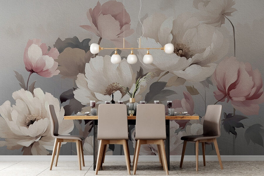 Transformez n’importe quel espace avec cette superbe peinture murale peinte avec des fleurs délicates, un mélange parfait de pivoines et de roses. Imaginez que vous entrez dans une pièce où de doux tons blush et des blancs crémeux fleurissent sur le mur, ajoutant instantanément de la chaleur et du caractère. C’est comme avoir un jardin à l’intérieur – pas besoin d’arroser !