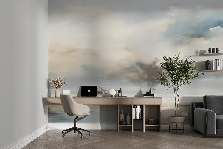 Transformez n’importe quel espace avec l’enchanteresse peinture murale “Ciel nuageux au-dessus d’une étendue d’eau”. Imaginez que vous vous laissez emporter dans une scène sereine où de douces teintes de bleu et de doux nuages dansent au-dessus d’eaux tranquilles – c’est comme des mini-vacances à la maison ! Parfait pour les salons, les chambres à coucher ou les couloirs qui ont besoin d’un peu d’amour. Cette peinture murale invite à la rêverie et à ces moments douillets où l’on a envie de siroter un thé et de contempler. De plus, son style aquarelle lui permet de se fondre parfaitement dans un décor moderne ou classique. Qui ne voudrait pas se réveiller avec cette vue apaisante ? C’est comme si vous aviez un morceau de vacances paisibles au bord de la mer chaque jour !