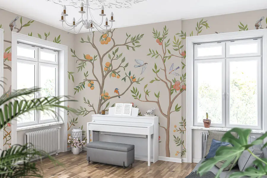 Transformez votre espace en une retraite paisible grâce à cette superbe peinture murale représentant de charmants oiseaux et des arbres éclatants. Imaginez que vous entrez dans un sanctuaire serein où la nature s’épanouit sur vos murs ! Les teintes douces et les motifs ludiques créent une atmosphère chaleureuse qui pourrait faire en sorte que tout le monde se sente immédiatement à l’aise. C’est comme si vous faisiez entrer l’extérieur à l’intérieur sans les insectes gênants. Imaginez-vous en train de vous blottir dans un bon livre, entouré de ces petits oiseaux sympathiques – c’est la toile de fond parfaite pour des après-midi de farniente ou des discussions animées. Attrayante et rafraîchissante, cette peinture murale ne manquera pas d’égayer n’importe quelle pièce. Qui aurait cru qu’une petite œuvre d’art pouvait apporter autant de joie ?