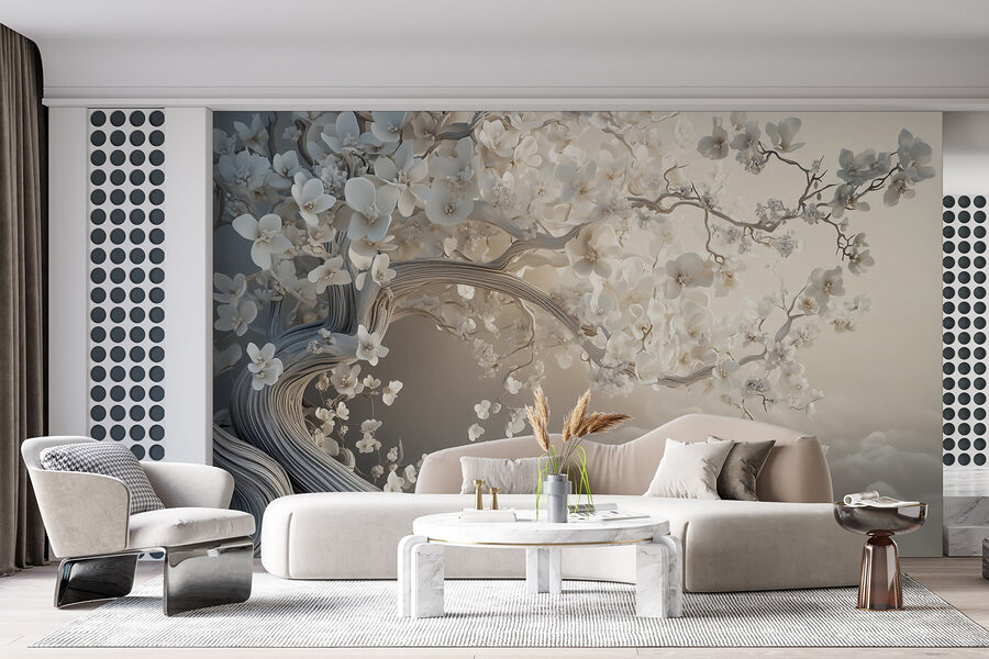 2 avis pour Papier peint Arbre blanc avec des fleurs blanches