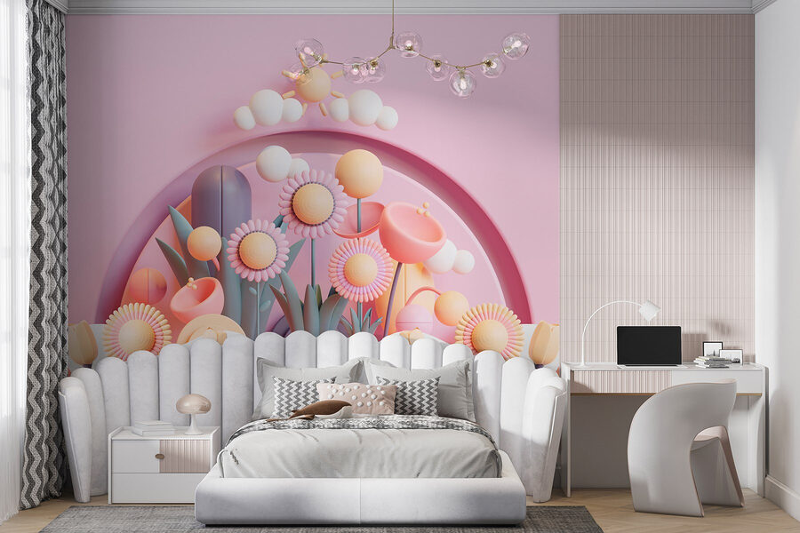 Illuminez n’importe quel espace avec cette peinture murale fantaisiste représentant un groupe de fleurs et de plantes pleines de vie. Imaginez que vous pénétrez dans un jardin où les couleurs éclatent et où les fleurs sourient pratiquement – c’est comme un pique-nique d’été sur vos murs ! Parfaite pour les chambres d’enfants ou tout autre endroit qui a besoin d’une touche de joie, cette peinture murale crée une atmosphère de rêve qui stimule l’imagination. La toile de fond rose tendre donne une impression de confort, tandis que les formes ludiques invitent à la curiosité. Imaginez des enfants rêvant d’aventures au milieu de ces fleurs, ou peut-être même inspirant quelques goûters sur le thème de la botanique – tout est dans cette ambiance délicieusement ludique. Ajoutez un peu de gaieté à votre maison et regardez les sourires grandir !