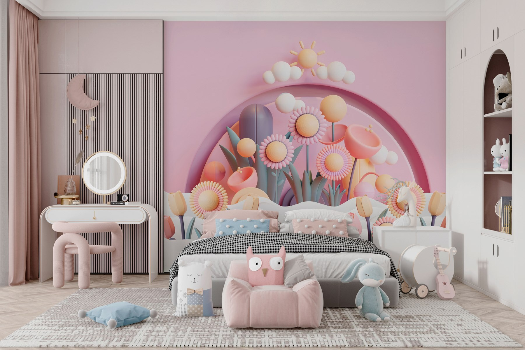 Illuminez n’importe quel espace avec cette peinture murale fantaisiste représentant un groupe de fleurs et de plantes pleines de vie. Imaginez que vous pénétrez dans un jardin où les couleurs éclatent et où les fleurs sourient pratiquement – c’est comme un pique-nique d’été sur vos murs ! Parfaite pour les chambres d’enfants ou tout autre endroit qui a besoin d’une touche de joie, cette peinture murale crée une atmosphère de rêve qui stimule l’imagination. La toile de fond rose tendre donne une impression de confort, tandis que les formes ludiques invitent à la curiosité. Imaginez des enfants rêvant d’aventures au milieu de ces fleurs, ou peut-être même inspirant quelques goûters sur le thème de la botanique – tout est dans cette ambiance délicieusement ludique. Ajoutez un peu de gaieté à votre maison et regardez les sourires grandir !