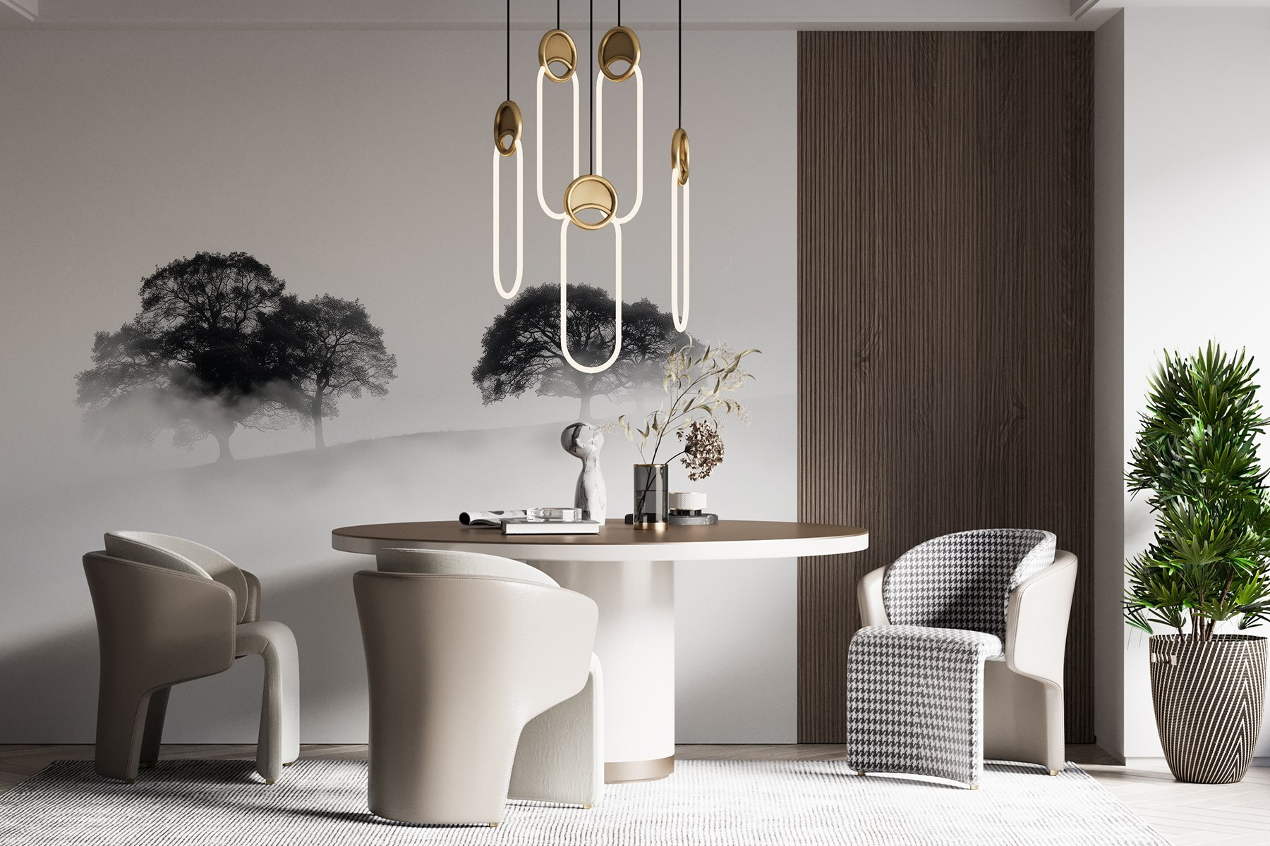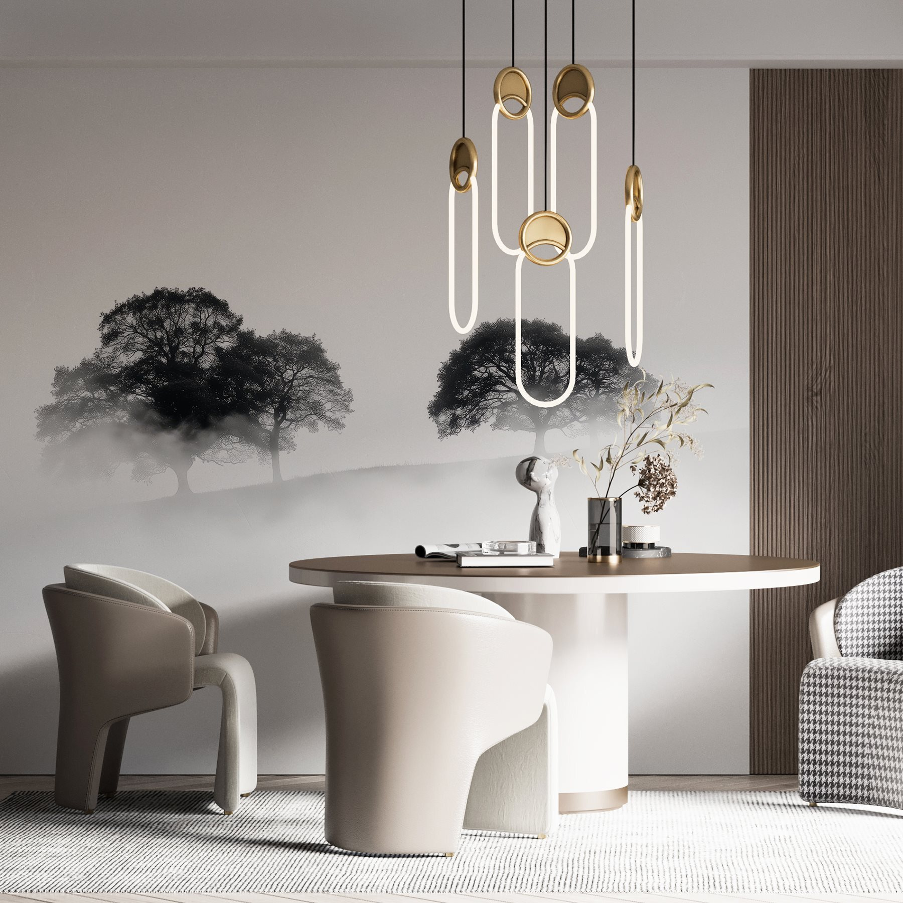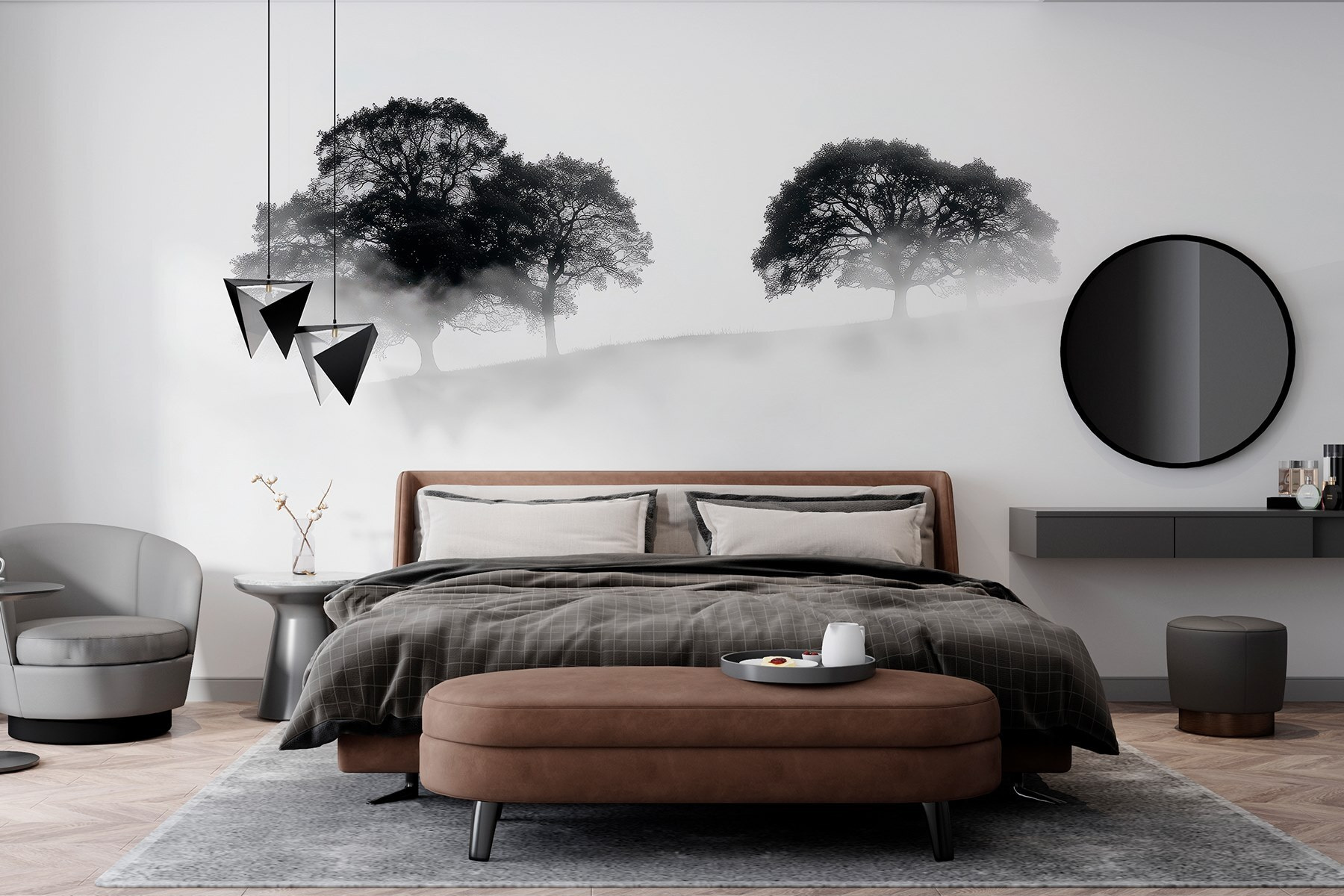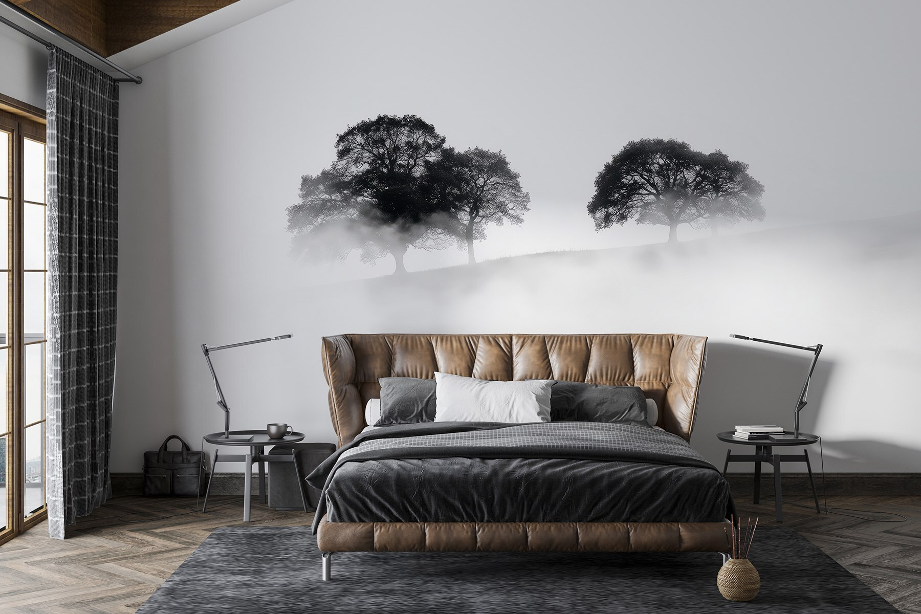 Transformez n’importe quelle pièce en une évasion sereine grâce à cette peinture murale enchanteresse d’arbres enveloppés de brouillard. Imaginez que vous entrez dans votre espace et que vous sentez immédiatement le calme vous envahir, comme une douce brume enveloppant vos épaules par un matin calme. L’élégance discrète des silhouettes ajoute une touche de mystère, parfaite pour susciter la conversation ou la contemplation.