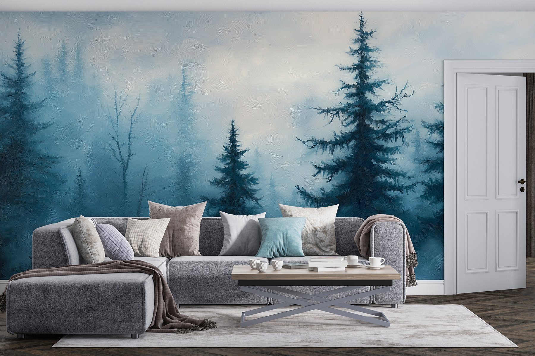 Transformez votre espace avec le charme enchanteur de la peinture murale “Foggy Forest with Trees”. Imaginez que vous pénétrez dans une forêt brumeuse où chaque regard est comme une douce évasion dans la nature. Les couleurs douces et feutrées enveloppent votre pièce d’une atmosphère apaisante, parfaite pour un coin lecture confortable ou une chambre à coucher sereine.
