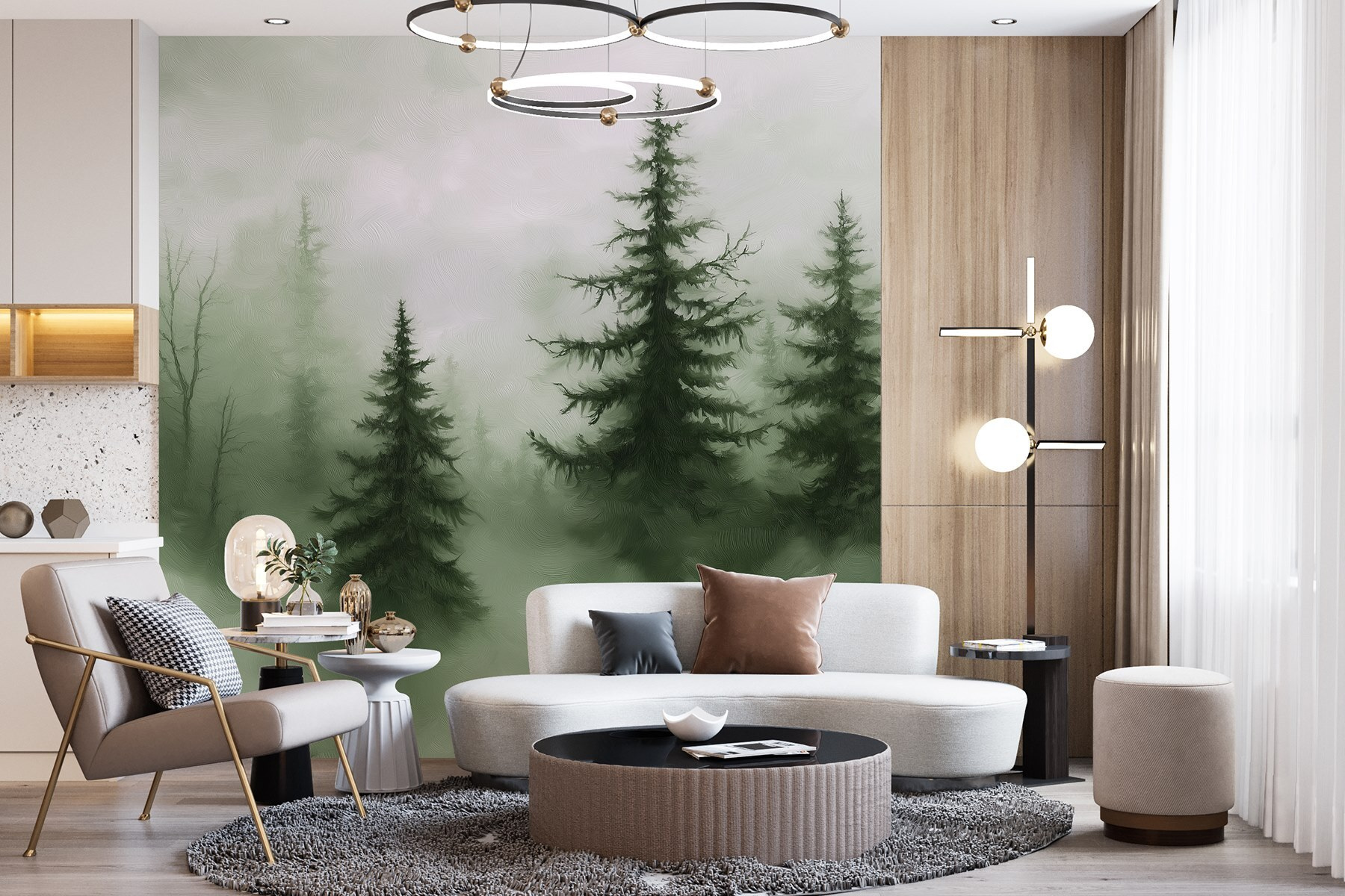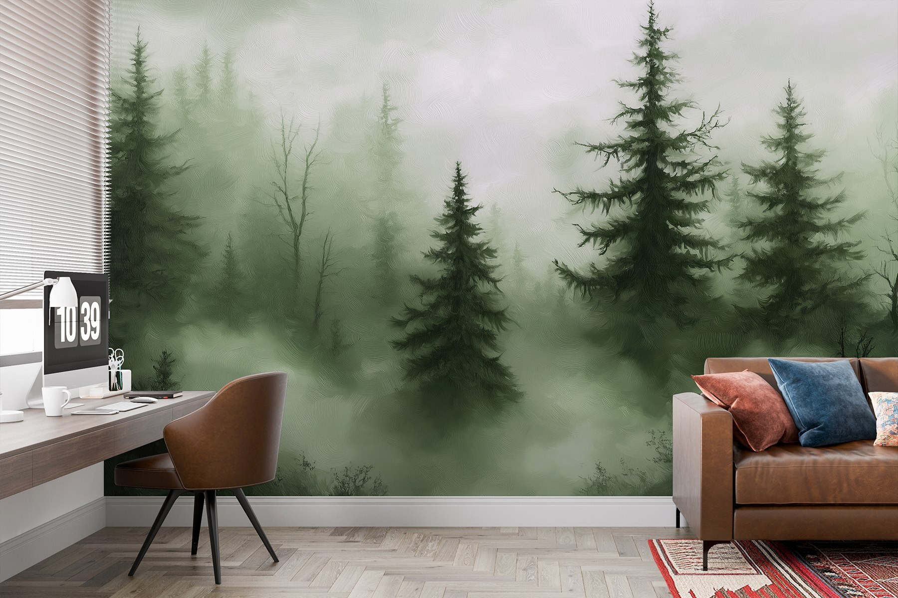 Entrez dans un monde de rêve avec la peinture murale “Foggy Forest with Trees” (forêt brumeuse avec des arbres). Imaginez que vous sirotiez votre café du matin au milieu d’une forêt brumeuse et tranquille, où les arbres imposants semblent chuchoter des secrets. Ce motif apporte une tranche de nature dans votre maison, parfaite pour créer un coin douillet ou une retraite paisible. Les verts discrets et les textures douces invitent à la sérénité, un peu comme un câlin de Mère Nature. De plus, pas besoin de chaussures de randonnée ni de bombe insecticide ! Il suffit de s’asseoir, de se détendre et de laisser vos murs parler.