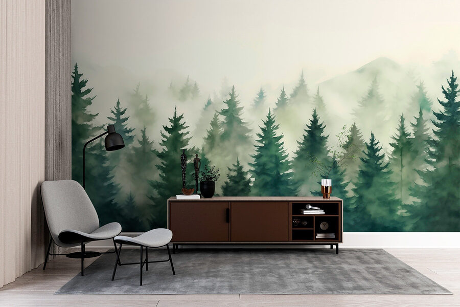 Parfaite pour créer un coin douillet ou un coin lecture, cette merveille d’aquarelle adoucit l’espace, lui donnant de la profondeur sans le surcharger. De plus, qui n’aime pas un peu de verdure ? Alors pourquoi ne pas transformer ce simple mur en un lieu de rêve ? C’est comme si vous entriez dans un magnifique rêve éveillé à chaque fois que vous pénétrez dans la pièce !