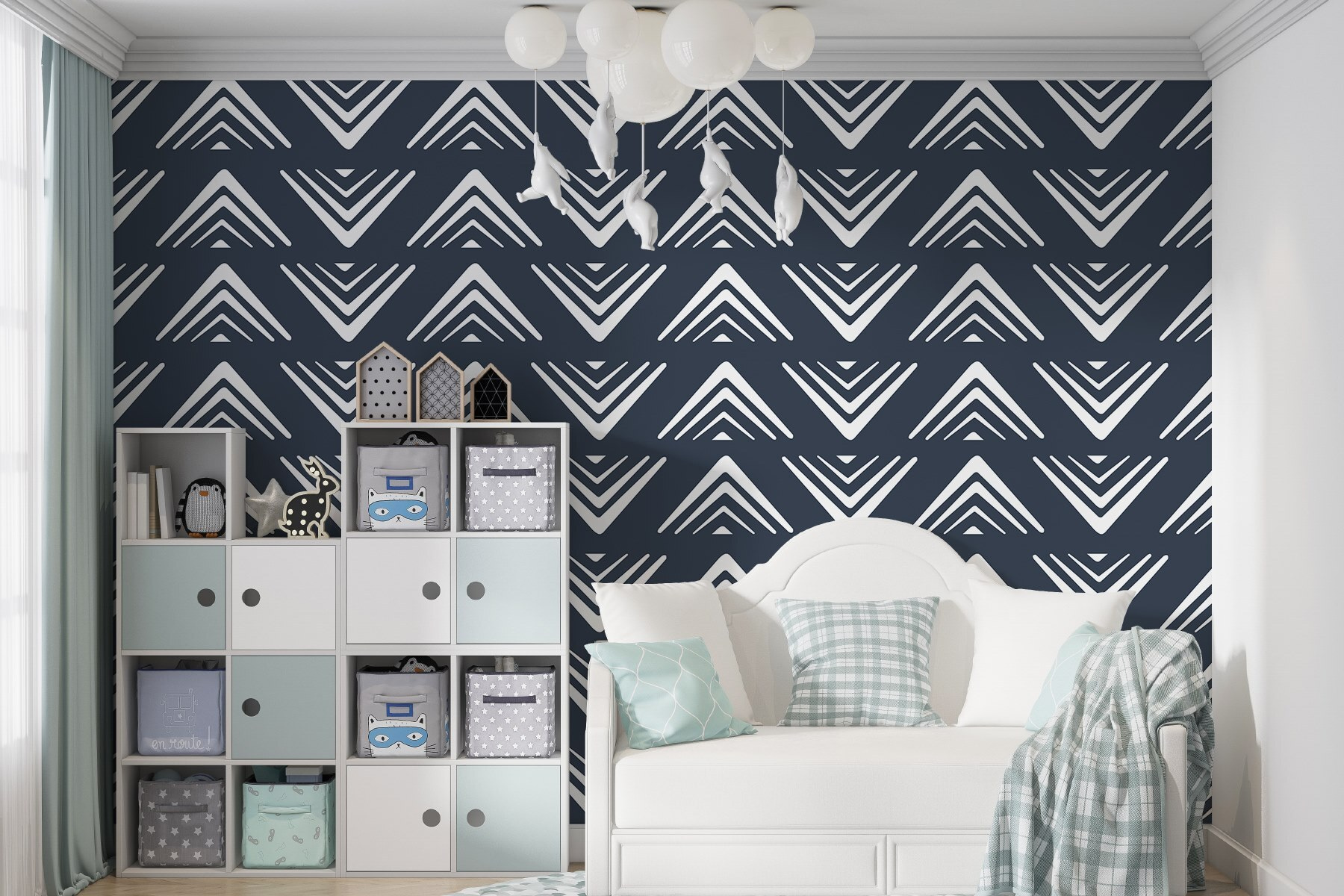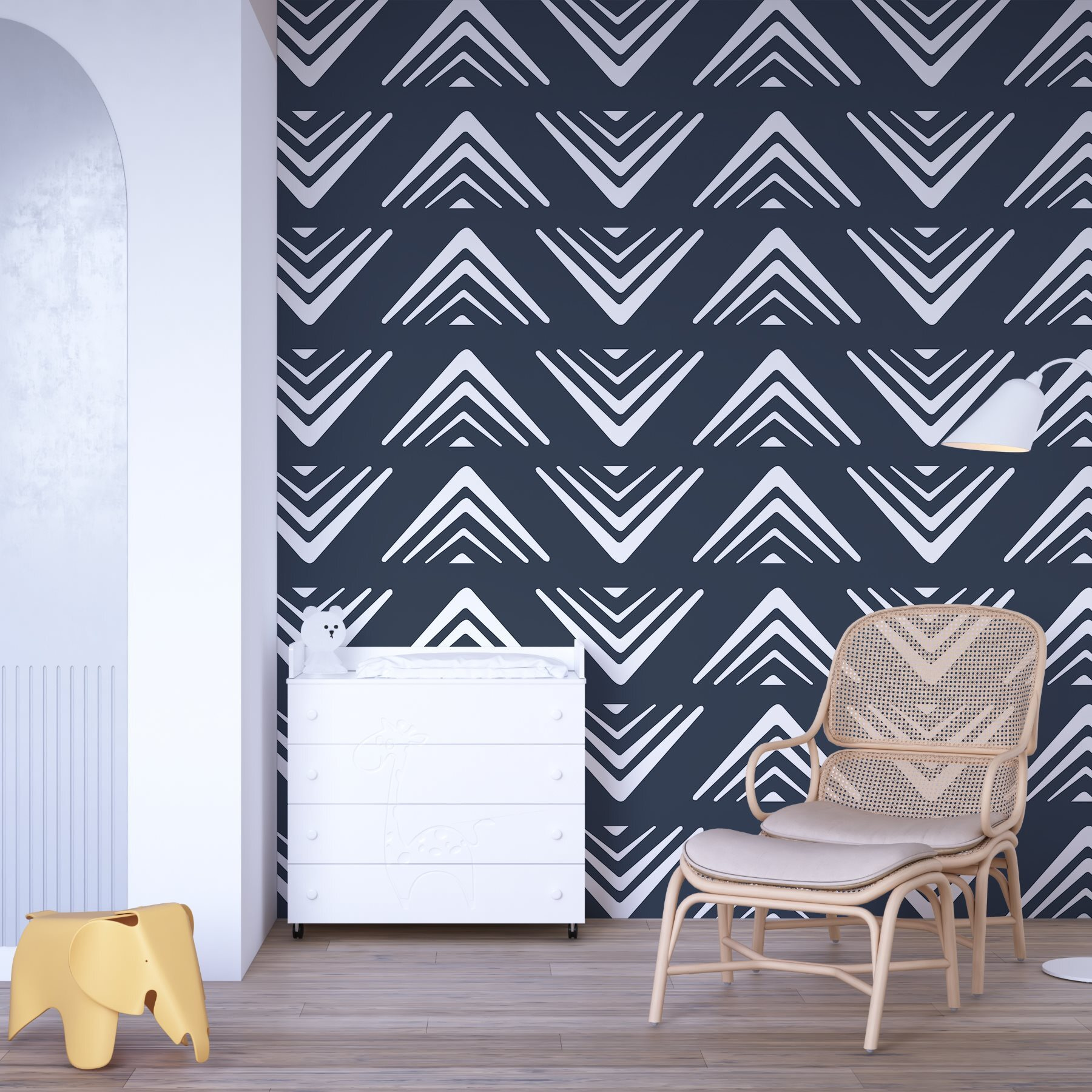 Transformez votre espace avec le “motif mural de triangles”. Ce motif est comme une amorce de conversation secrète – imaginez vos invités admirant les vibrations géométriques et épurées tout en sirotant un café. Les triangles blancs tranchants se détachent sur une toile de fond marine profonde, créant un rythme qui danse sur vos murs. Il est à la fois audacieux et apaisant, et constitue le bon équilibre pour un salon confortable ou un bureau chic. Imaginez que vous vous enfoncez dans un fauteuil avec cette peinture murale derrière vous et que vous vous sentez inspiré et plein d’énergie. Sérieusement, qui a besoin de galeries d’art quand vos murs peuvent parler d’eux-mêmes ? Une touche de style contemporain qui ne se contente pas de décorer – elle rehausse l’ensemble de votre atmosphère !