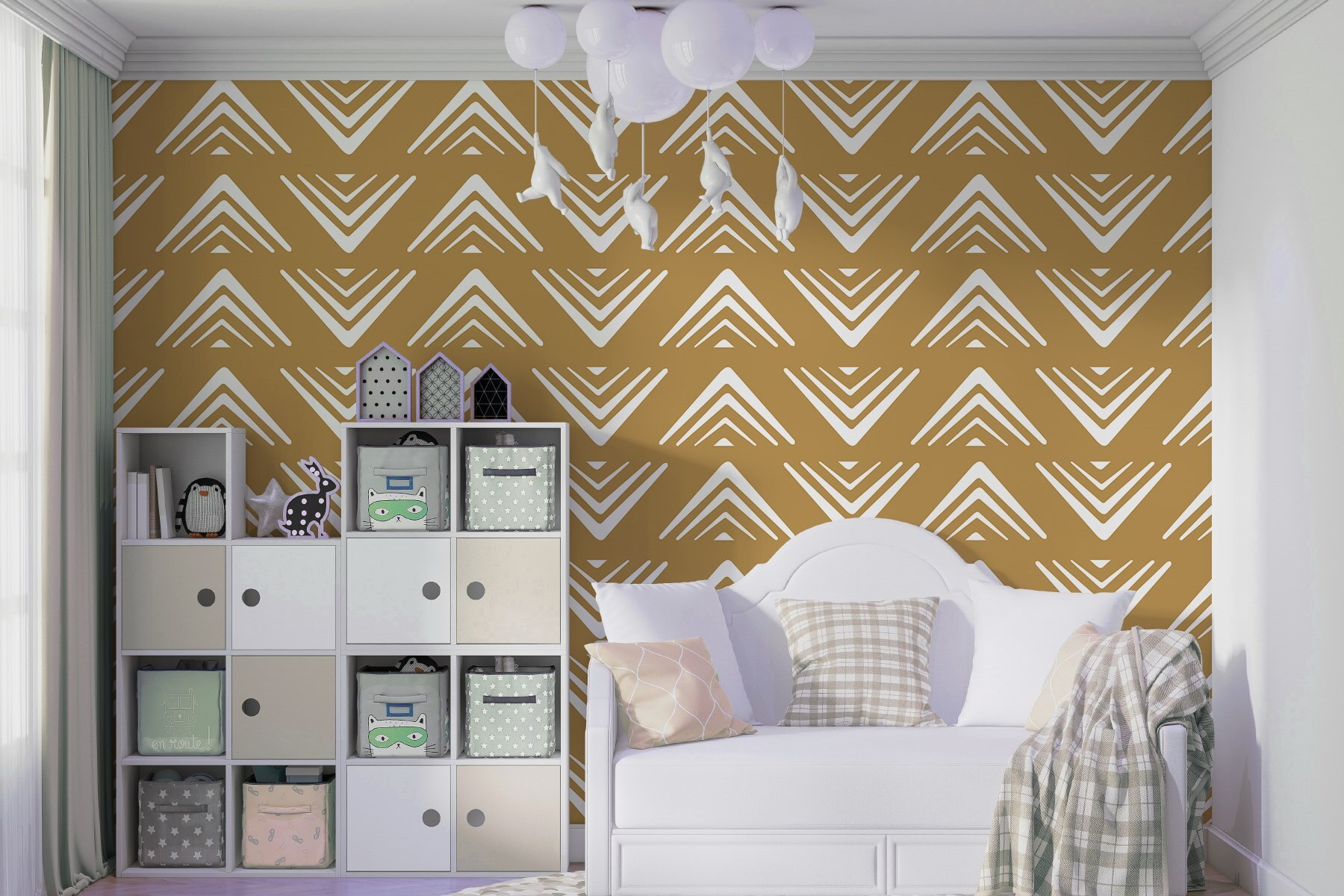 Transformez n’importe quel espace avec cette peinture murale vibrante présentant un motif ludique de triangles dansant sur un fond jaune ensoleillé. C’est comme une explosion de joie sur les murs, qui illumine instantanément l’humeur. Imaginez que vous sirotiez votre café dans une pièce pleine de vie et d’énergie – quelle façon de commencer la journée ! De plus, ces lignes épurées et ces formes géométriques ajoutent une touche de modernité, ce qui en fait une œuvre parfaite pour les coins douillets et les salons chics. C’est le genre de peinture murale qui suscite la conversation, fait sourire les invités et peut même inspirer des mouvements de danse impromptus. Une touche de fun, n’est-ce pas ?