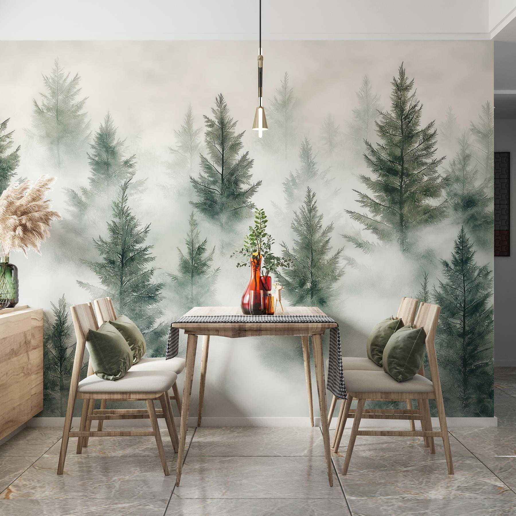 Transformez n’importe quelle pièce en une escapade forestière sereine grâce à cette superbe peinture murale représentant un groupe d’arbres luxuriants enveloppés d’un léger brouillard. Imaginez que vous sirotiez votre café du matin en regardant ces géants chuchotants, leur étreinte brumeuse évoquant un sentiment de calme qui vous enveloppe comme une couverture douillette. C’est comme si vous apportiez une tranche de nature à l’intérieur, les insectes et la saleté en moins ! Parfaite pour les salons ou les chambres à coucher, cette peinture murale ajoute de la profondeur et une ambiance de rêve. C’est vraiment l’œuvre d’art de la nature – pas besoin de chaussures de randonnée !