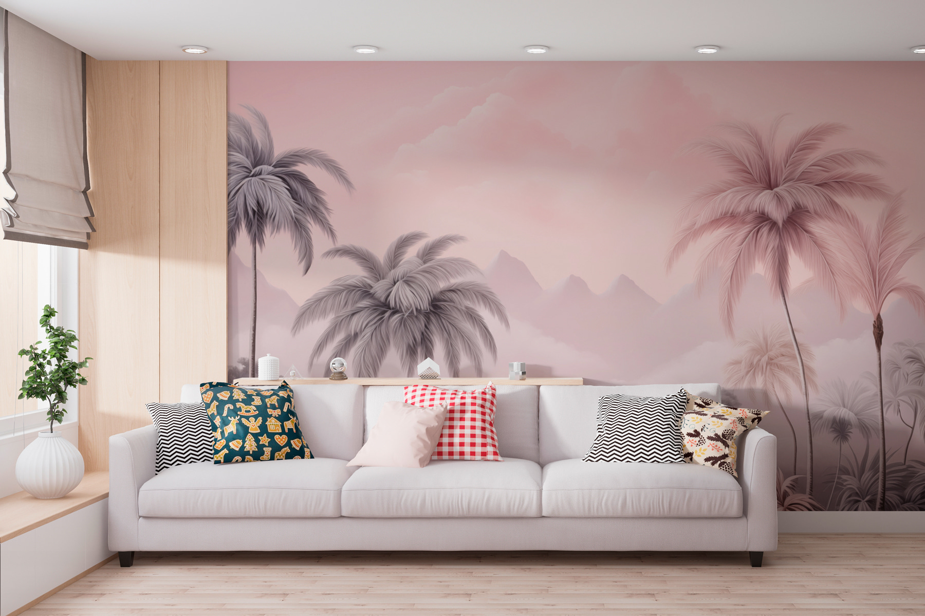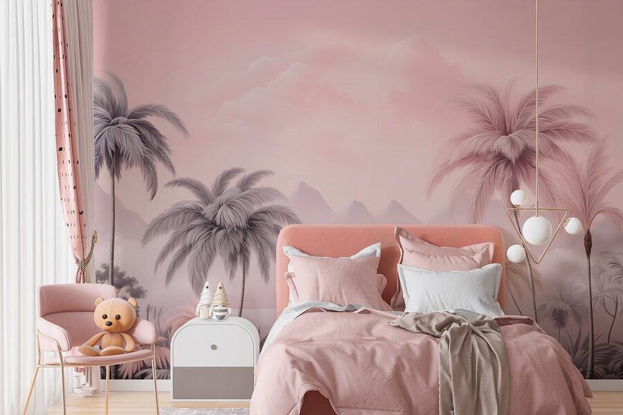 Transformez votre espace en une escapade tranquille avec cette superbe peinture murale représentant des palmiers luxuriants et des montagnes sereines. Imaginez-vous en train de siroter votre boisson préférée tandis que les douces teintes de rose et de gris vous enveloppent, donnant à chaque jour l’impression d’être en vacances. Cette peinture murale est parfaite pour créer une ambiance détendue, que ce soit dans le salon ou dans le coin lecture que vous aimeriez avoir ! La façon dont les montagnes apparaissent à travers les palmiers ? C’est de la magie à l’état pur. C’est comme si la nature s’était invitée à l’intérieur, apaisant l’âme un regard à la fois. De plus, elle est suffisamment audacieuse pour engager la conversation – qui ne l’admirerait pas ?