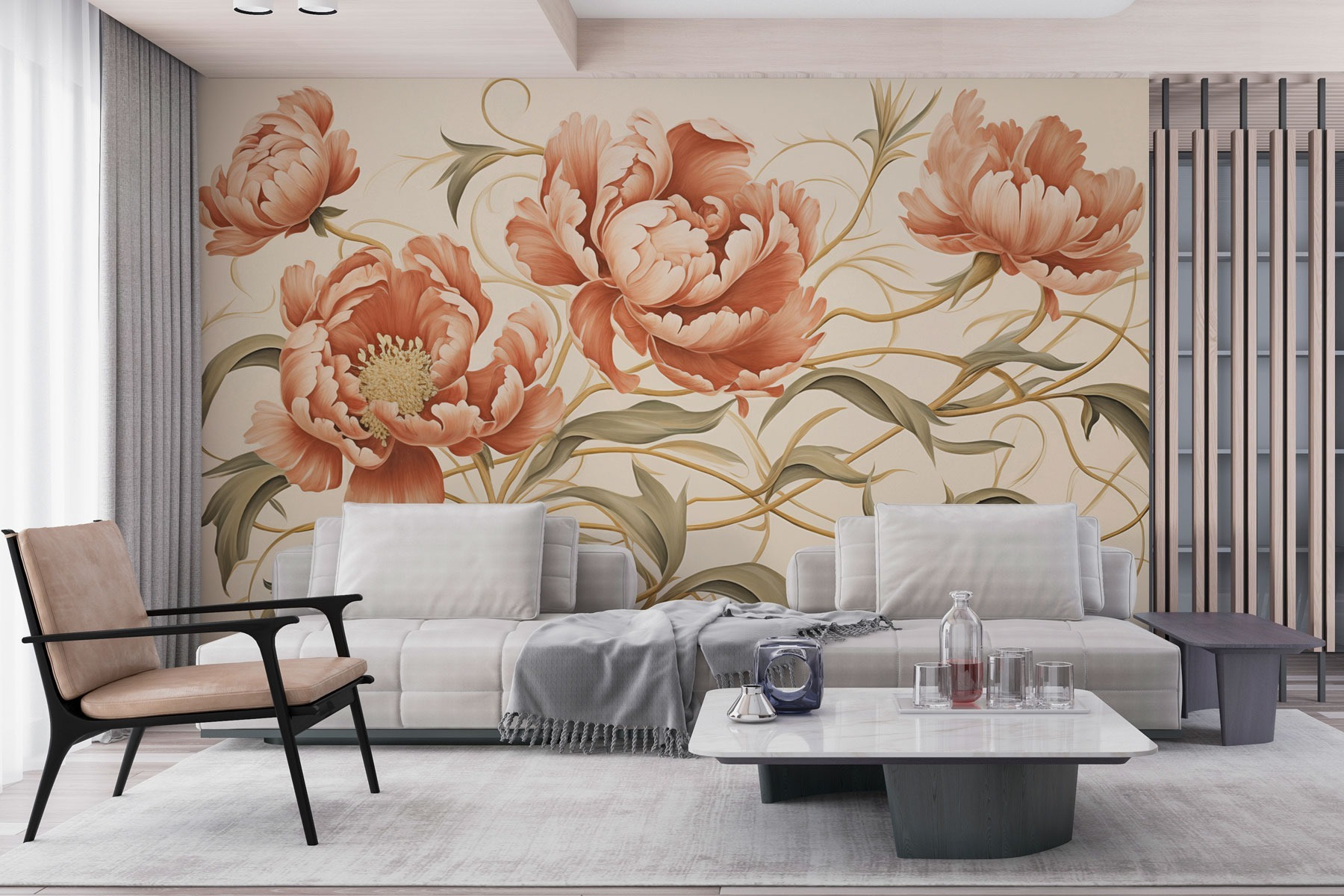 Transformez n’importe quelle pièce en un refuge botanique douillet grâce à cette superbe peinture murale de fleurs et de plantes grimpantes. Imaginez : la lumière du soleil qui pénètre à l’intérieur et ces magnifiques pivoines, dans des tons roses et pêche, qui dansent sur une toile de fond chaleureuse. C’est comme si vous apportiez un petit jardin à l’intérieur sans avoir à l’arroser !