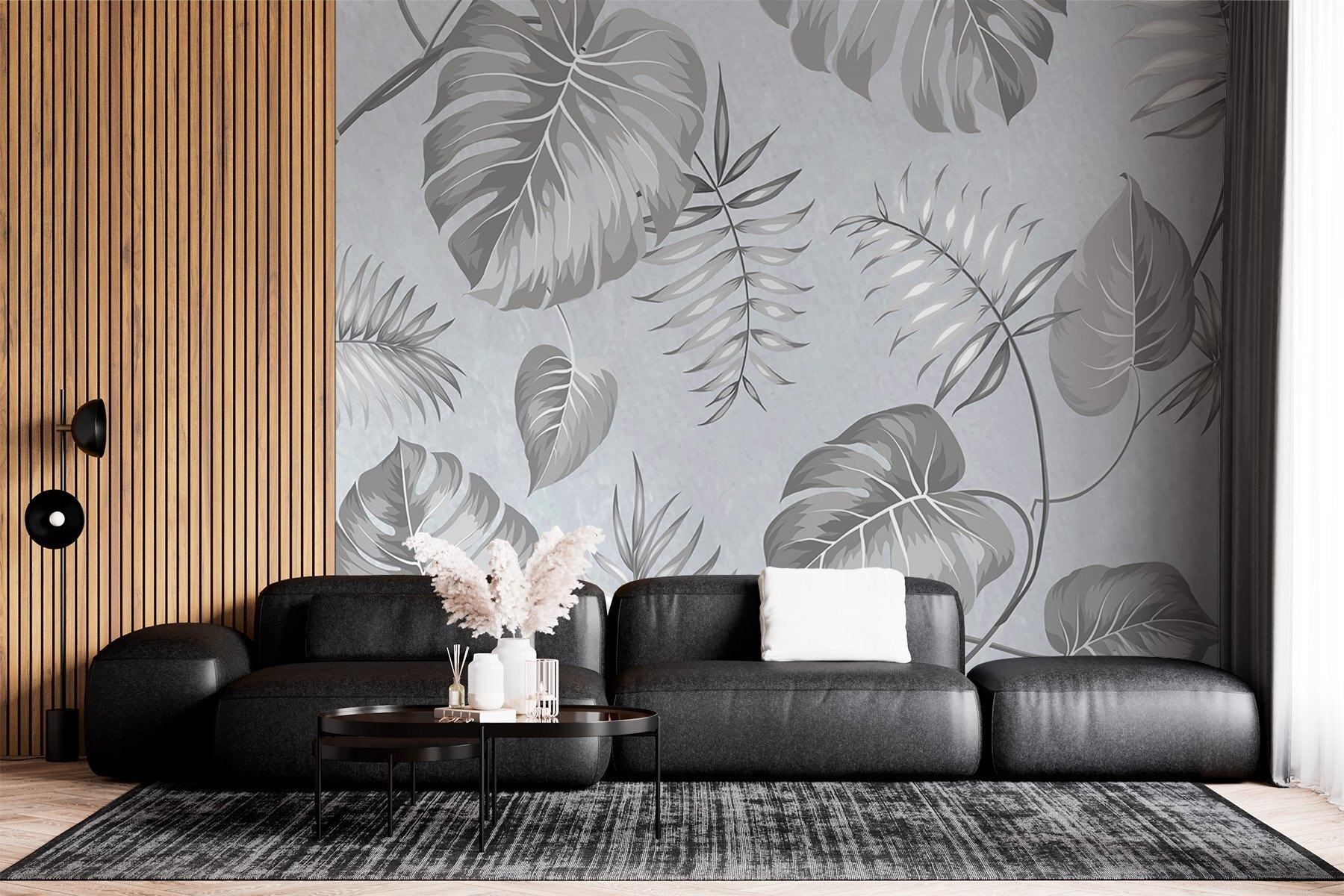 Transformez n’importe quelle pièce en oasis de sérénité avec cette élégante peinture murale florale grise et blanche. Imaginez que vous vous réveillez chaque matin entouré de ces feuilles de rêve qui se balancent doucement, comme si elles murmuraient les secrets des tropiques. Les nuances subtiles invitent au calme, ce qui est parfait pour un coin lecture confortable ou un salon dynamique. C’est comme si vous apportiez une tranche de nature à l’intérieur, sans risque d’arrosage ! Vos amis se demanderont comment un simple mur peut être aussi vivant. De plus, il ne nécessite que très peu d’entretien. Asseyez-vous, détendez-vous et laissez cette peinture murale faire le gros du travail pour votre décor. Vous pourriez même vous surprendre à rêver d’une escapade sur une île.