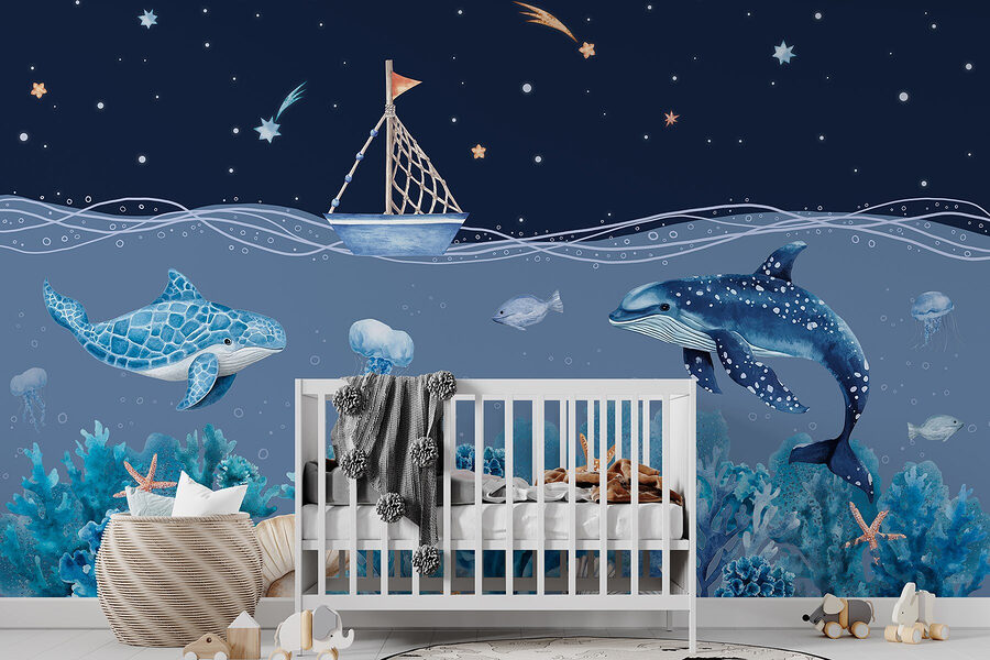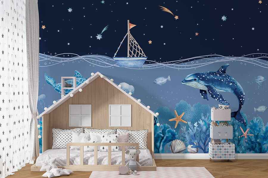 Transformez n’importe quelle pièce en une évasion sous-marine sereine avec le “Murale Sea Life avec un bateau et une baleine”. Imaginez une baleine enjouée glissant sur une mer de rêve tandis qu’un charmant bateau navigue au-dessus. C’est comme si vous aviez une partie de l’océan sur votre mur. Les bleus froids et les verts doux enveloppent l’espace d’une étreinte apaisante, faisant du café du matin un moment paradisiaque. Parfaite pour une chambre d’enfant ou un coin lecture confortable, cette peinture murale ne manquera pas de stimuler l’imagination. Qui ne voudrait pas se plonger dans des récits d’aventures en haute mer ? Plongez et laissez vos murs prendre vie !