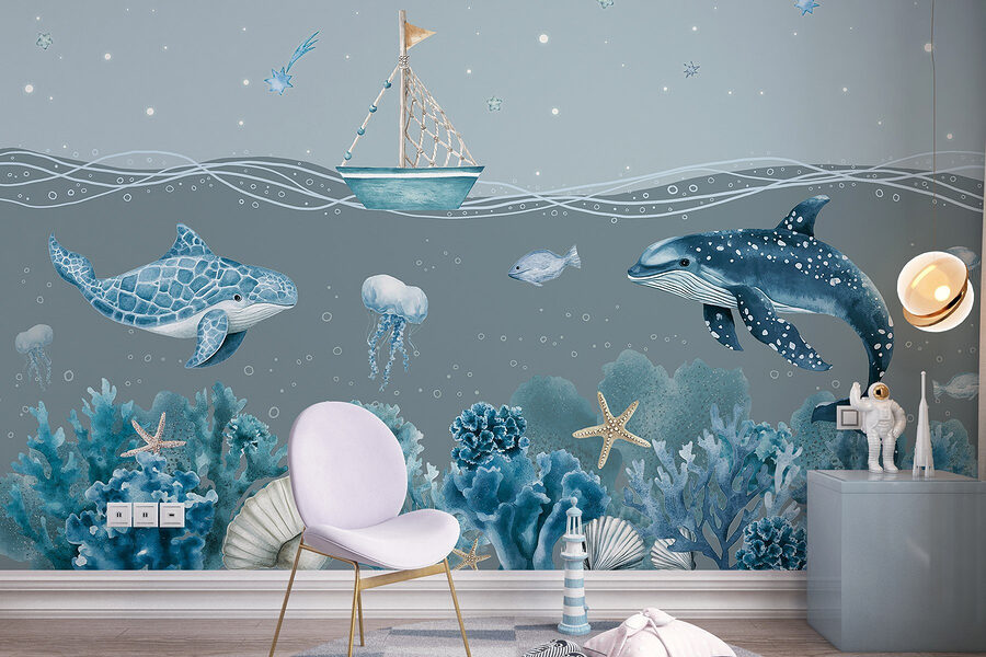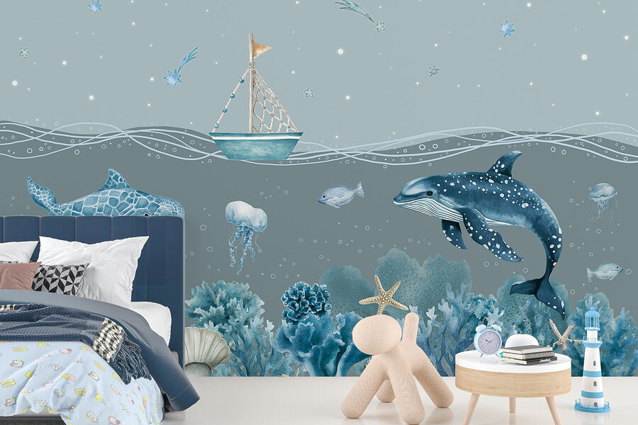 Transformez votre espace en une évasion sous-marine sereine avec la peinture murale “Sea Life”. Imaginez que vous vous réveillez tous les jours avec des dauphins enjoués et de douces méduses qui dansent sur vos murs. Cette scène de rêve représente un charmant petit bateau glissant dans une mer tranquille, entouré de coraux et d’étoiles de mer éclatants. C’est comme si vous aviez un morceau d’océan à la maison, sans les cheveux salés ! Parfaite pour une chambre d’enfant ou même un coin lecture confortable, cette peinture murale apporte une touche de fantaisie et de calme. Laissez-vous envahir par les couleurs, créant une ambiance calme qui pourrait bien vous inspirer des rêves d’aventures en mer.