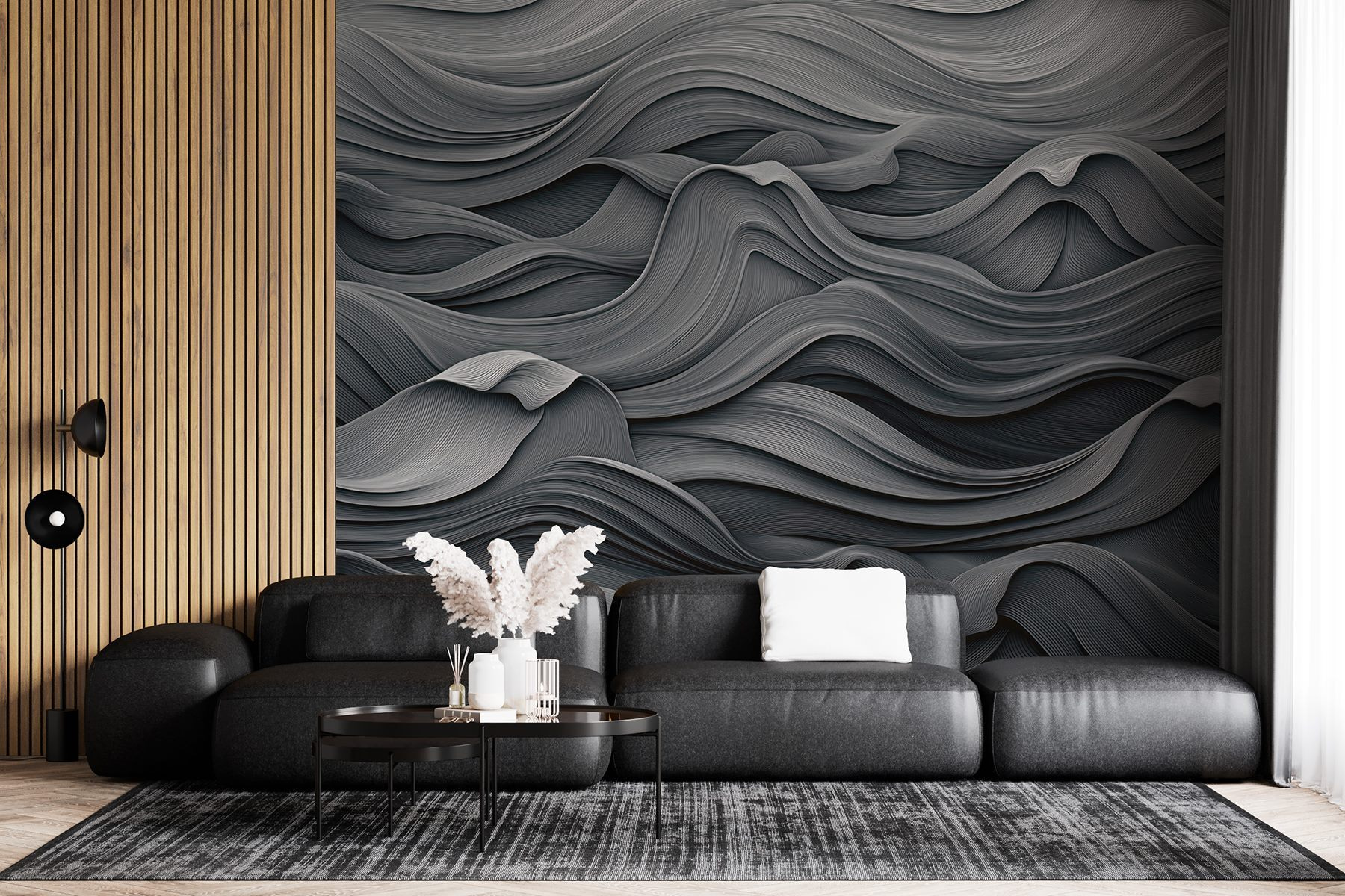 Transformez votre espace avec cette magnifique peinture murale ondulée grise et blanche. Il ressemble à une douce danse de vagues, ajoutant une ambiance sereine qui rend n’importe quelle pièce plus accueillante. Imaginez votre salon ou votre chambre à coucher enveloppés de ces lignes douces et ondulantes – soudain, c’est comme si vos murs vous chuchotaient des secrets tranquilles. Parfait pour les soirées douillettes ou même pour un brunch animé avec des amis, il permet d’engager la conversation sans même essayer. De plus, qui n’aime pas un peu de texture ? Ce n’est pas seulement un décor, c’est une expérience, qui transforme ces murs fades en une toile de sophistication subtile. Plongez dans l’ambiance !