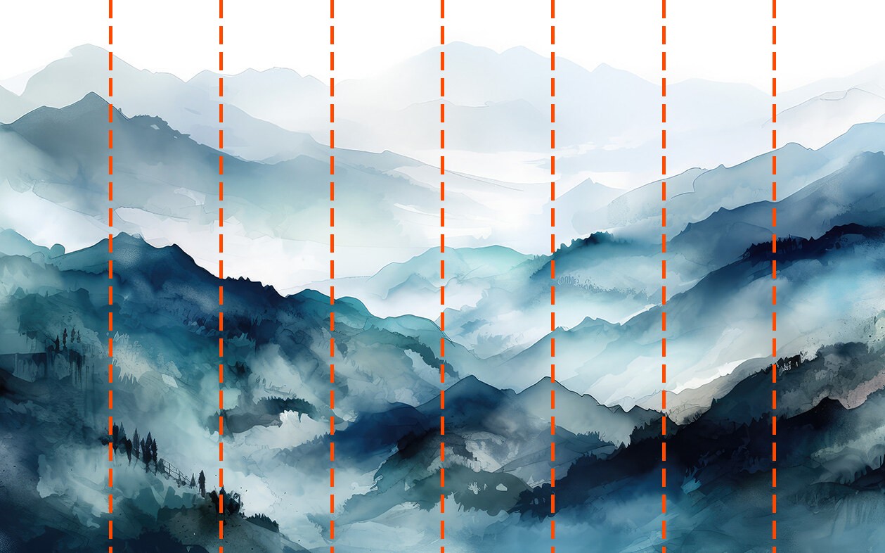 Votre papier peint sera préparé selon les dimensions que vous avez indiquées lors du processus de commande. La toile sera divisée en sections pratiques, chacune d’une largeur maximale de 50 cm.