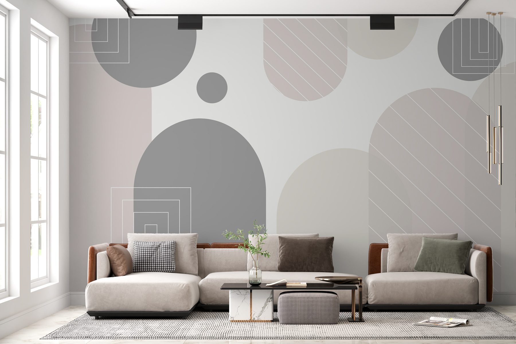 Transformez votre espace avec cette peinture murale géométrique douce qui évoque la sophistication. Imaginez maintenant : un coin douillet baigné de doux tons neutres, où chaque courbe et chaque ligne semblent danser harmonieusement sur le mur. C’est comme l’ami parfait qui sait comment détendre l’atmosphère sans dire un mot.