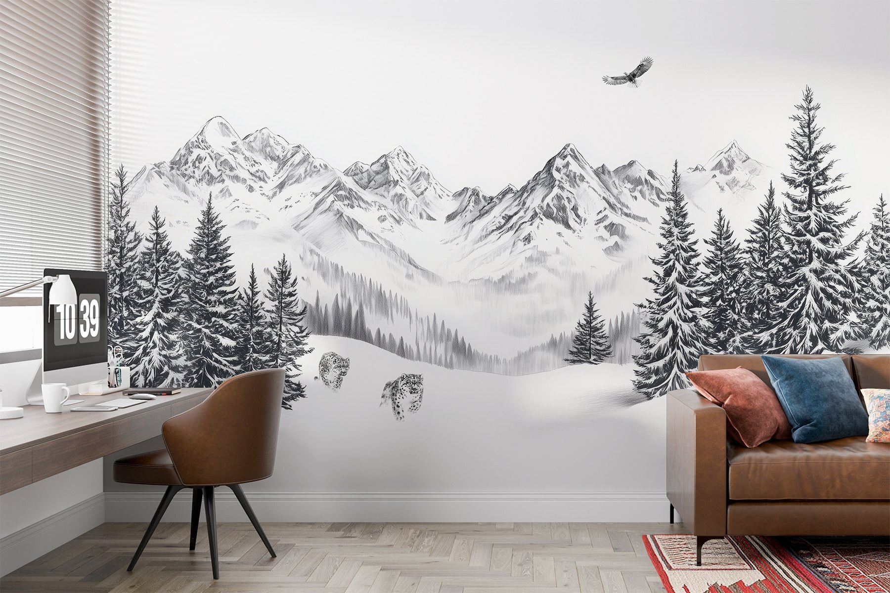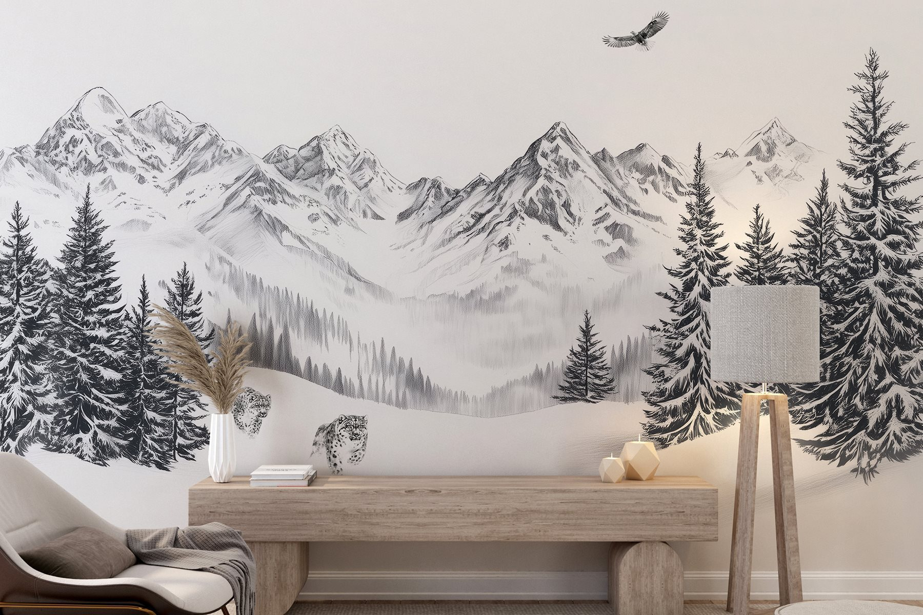 Transformez n’importe quel mur en une escapade sereine avec ce superbe paysage mural de montagne enneigée. Imaginez le doux bruit de la neige qui tombe, les montagnes majestueuses qui s’élèvent dans les nuages et un oiseau solitaire qui plane au-dessus de votre tête. C’est comme si vous apportiez un morceau de nature paisible à l’intérieur. Imaginez que vous sirotiez votre café du matin en contemplant cette beauté et que vous ressentiez une vague de calme vous envahir. Parfaite pour les recoins douillets ou les murs d’apparat, cette peinture murale ajoute non seulement du caractère, mais invite également à des rêveries de randonnées enneigées et d’air frais de la montagne. De plus, qui ne voudrait pas d’un couple de léopards effrontés à proximité ? C’est à la fois un sujet de conversation et un moyen d’évasion !