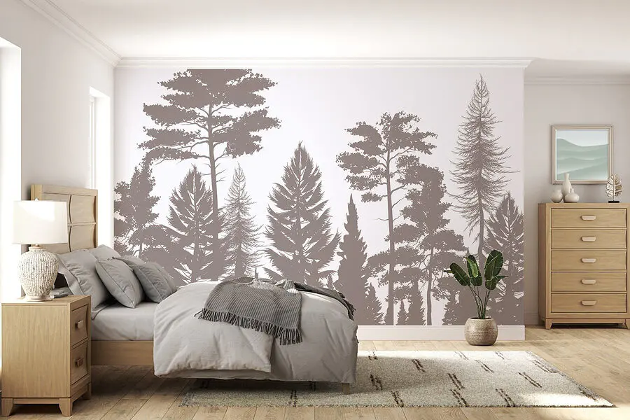 Transformez votre espace avec cette superbe peinture murale d’une forêt remplie d’arbres, parfaite pour tous ceux qui ont envie d’une petite tranche de nature à l’intérieur. Imaginez que vous entrez dans votre salon confortable et que vous avez l’impression de vous promener dans un bosquet tranquille, avec des ombres douces et des silhouettes sereines qui invitent à la sérénité. Les tons terreux créent une toile de fond chaleureuse qui permet aux autres éléments de décoration de s’épanouir sans envahir les sens. C’est comme si vous faisiez entrer une bouffée d’air frais dans votre maison. Vos amis se demanderont peut-être si vous avez une cabane secrète dans les bois. Parfait pour les amoureux de la nature ou pour tous ceux qui ont besoin de s’évader un peu de l’agitation quotidienne !