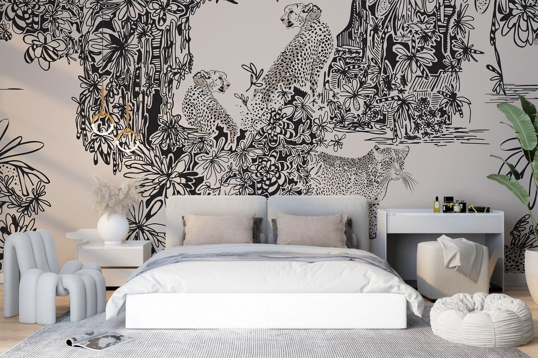 Transformez votre espace en une retraite sauvage grâce à cette superbe peinture murale représentant de gracieux guépards parmi des plantes luxuriantes. Imaginez que vous entrez dans une pièce qui ressemble à une jungle baignée de soleil, où chaque regard révèle ces félins élégants qui se prélassent dans leur habitat naturel. Le design complexe ajoute une touche de fantaisie, ce qui le rend parfait pour tous ceux qui aiment la beauté de la nature avec une touche d’originalité. Imaginez que vous recevez des amis qui s’émerveillent devant cette toile de fond unique, suscitant des conversations sur les aventures dans la nature. C’est comme si vous faisiez un safari à la maison, sans le long vol ! Qu’il s’agisse d’une salle de séjour confortable ou d’une chambre d’enfant dynamique, cette peinture murale tisse une histoire d’élégance et d’aventure, apportant une tranche des tropiques directement sur vos murs.