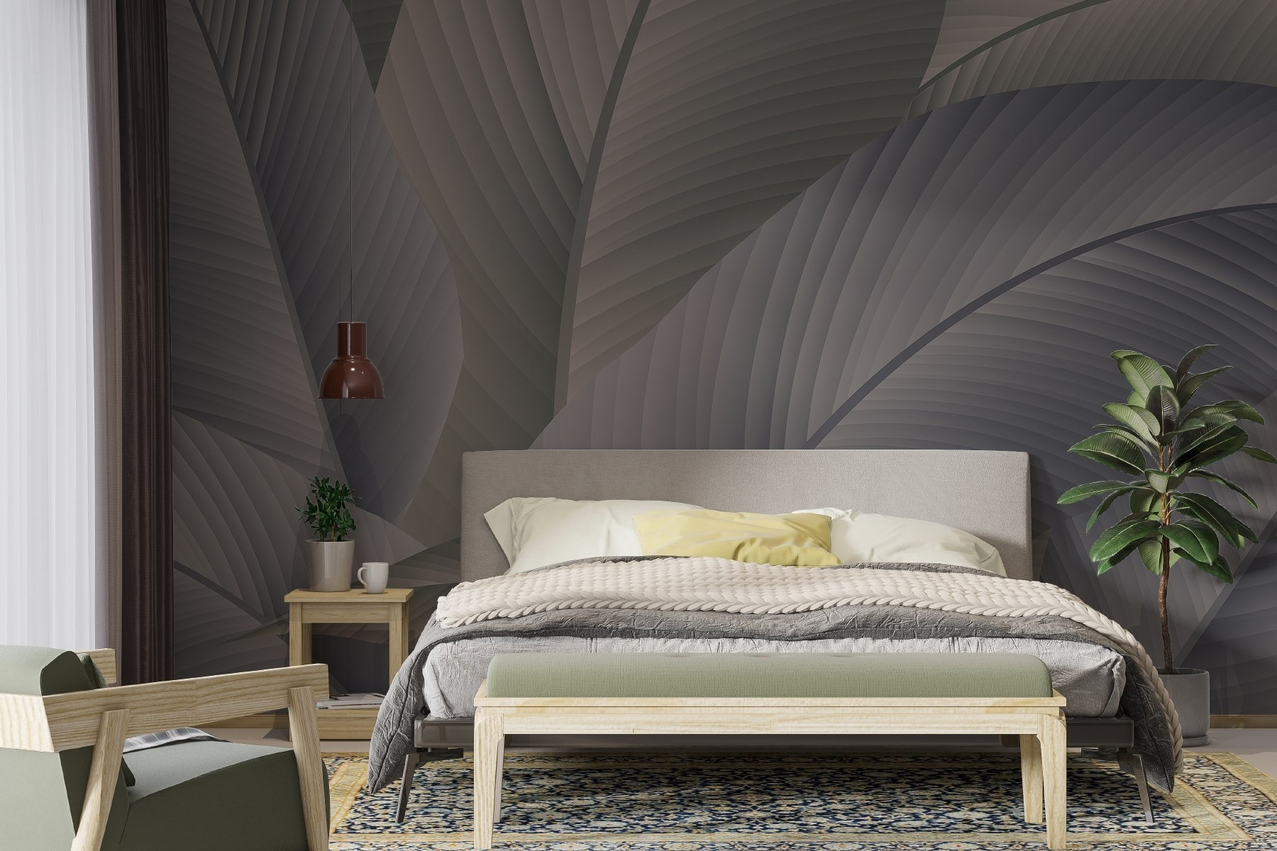 Transformez n’importe quelle pièce avec la captivante peinture murale “Soft Curves of Nature’s Patterns”, où des feuilles de palmier dansent élégamment sur votre mur. Imaginez que vous pénétrez chaque jour dans une oasis tropicale. Vous avez l’impression de passer de mini-vacances dans votre salon, n’est-ce pas ? Les couleurs apaisantes créent une atmosphère paisible, parfaite pour la détente et l’inspiration. De plus, c’est une toile de fond idéale pour les brunchs décontractés où tout le monde se retrouve pour discuter et siroter un café. C’est comme si la nature enveloppait vos murs d’un câlin douillet. Qui n’en voudrait pas ? Il est temps d’apporter à la maison une touche luxuriante et artistique !
