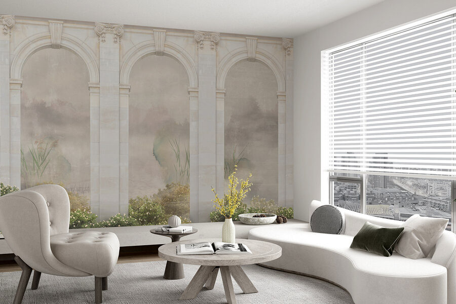 Entrez dans un monde de rêve avec cette superbe peinture murale représentant une arche en pierre encadrée par une végétation luxuriante. C’est comme si vous ouvriez une fenêtre sur un jardin tranquille, où la lumière danse à travers les arcades et murmure les secrets de la nature. Imaginez que vous sirotiez votre café du matin en contemplant cette scène paisible, et que vous sentiez une légère brise même à l’intérieur. Les teintes douces et les détails délicats invitent à la détente, ce qui est idéal pour un salon ou un coin lecture confortable. Cette peinture murale ne se contente pas de décorer, elle transforme votre espace en un petit coin de paradis, où chaque regard apporte un soupir de contentement. Parfait pour ceux qui ont envie d’une touche de nature dans leur vie, c’est plus qu’un papier peint, c’est une évasion quotidienne !