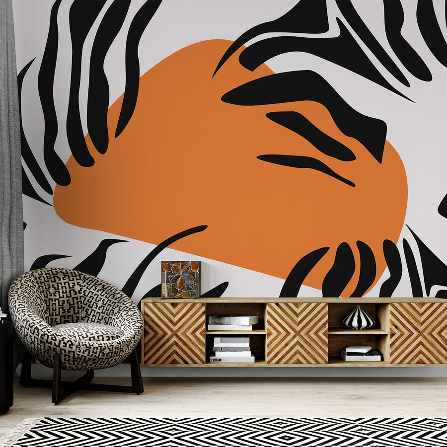 Transformer un espace peut parfois ressembler à un tour de magie, et c’est exactement ce que fait cette peinture murale. Les “motifs dynamiques aux couleurs vives” diffusent une ambiance énergique qui fera réfléchir tout le monde. Imaginez les rayures noires et blanches entrelacées d’une touche d’orange vif – c’est comme si l’œuvre d’art vous invitait à une fête de la jungle enjouée dans votre salon.