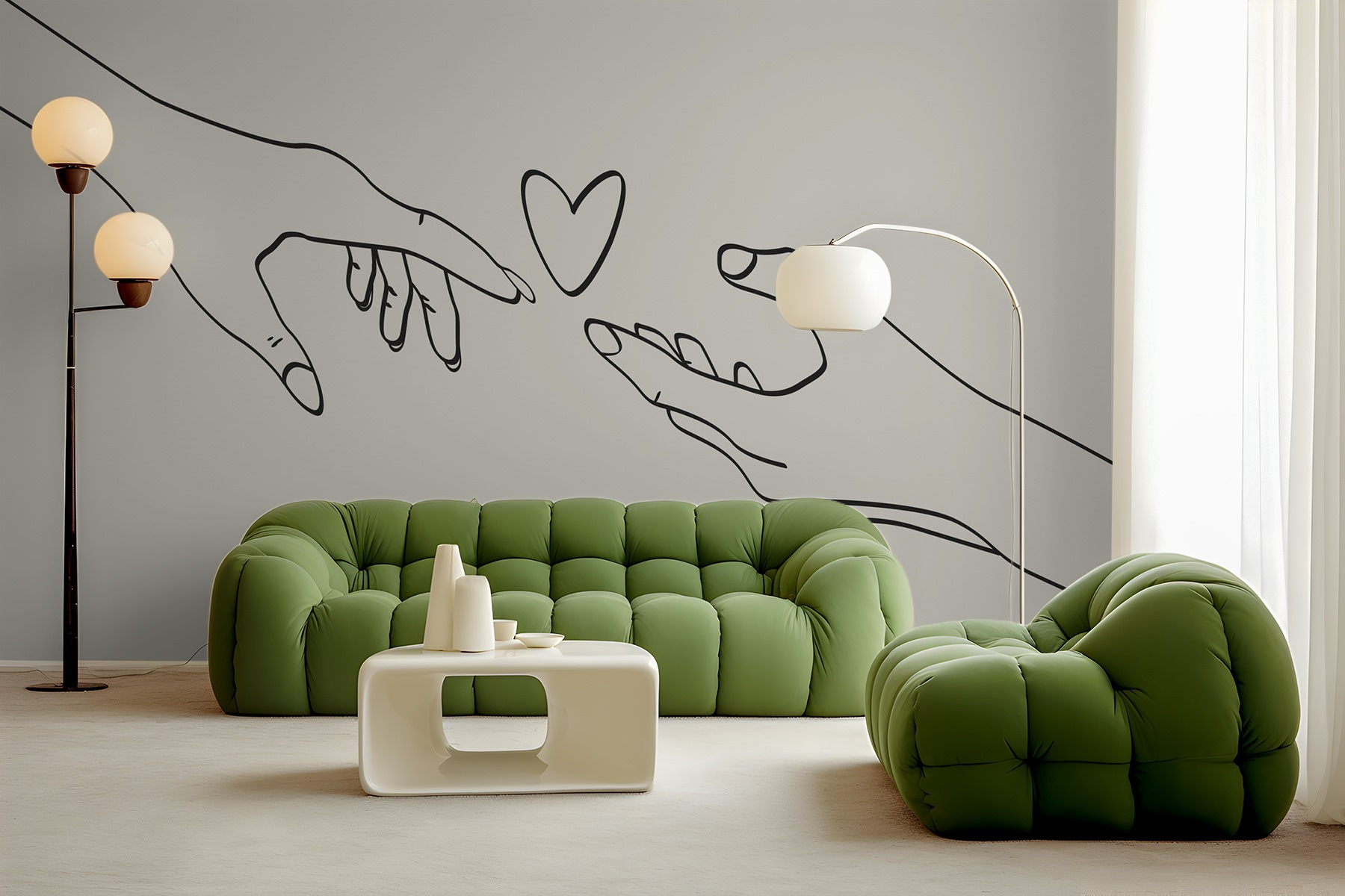 Transformez votre espace avec cette superbe peinture murale représentant deux mains se tendant vers un cœur. C’est simple mais profondément significatif, évoquant des sentiments de connexion et de chaleur. Imaginez-vous en train de siroter votre boisson préférée tout en profitant de l’ambiance chaleureuse qu’apporte cette pièce. Instantanément, elle pourrait transformer une pièce ordinaire en un havre de paix. C’est comme un doux rappel de chérir ces petits moments d’amour et de connexion. De plus, elle s’associe parfaitement à des plantes ou à un fauteuil confortable pour créer le coin détente idéal. Préparez-vous à recevoir des compliments : cette peinture murale va voler la vedette !