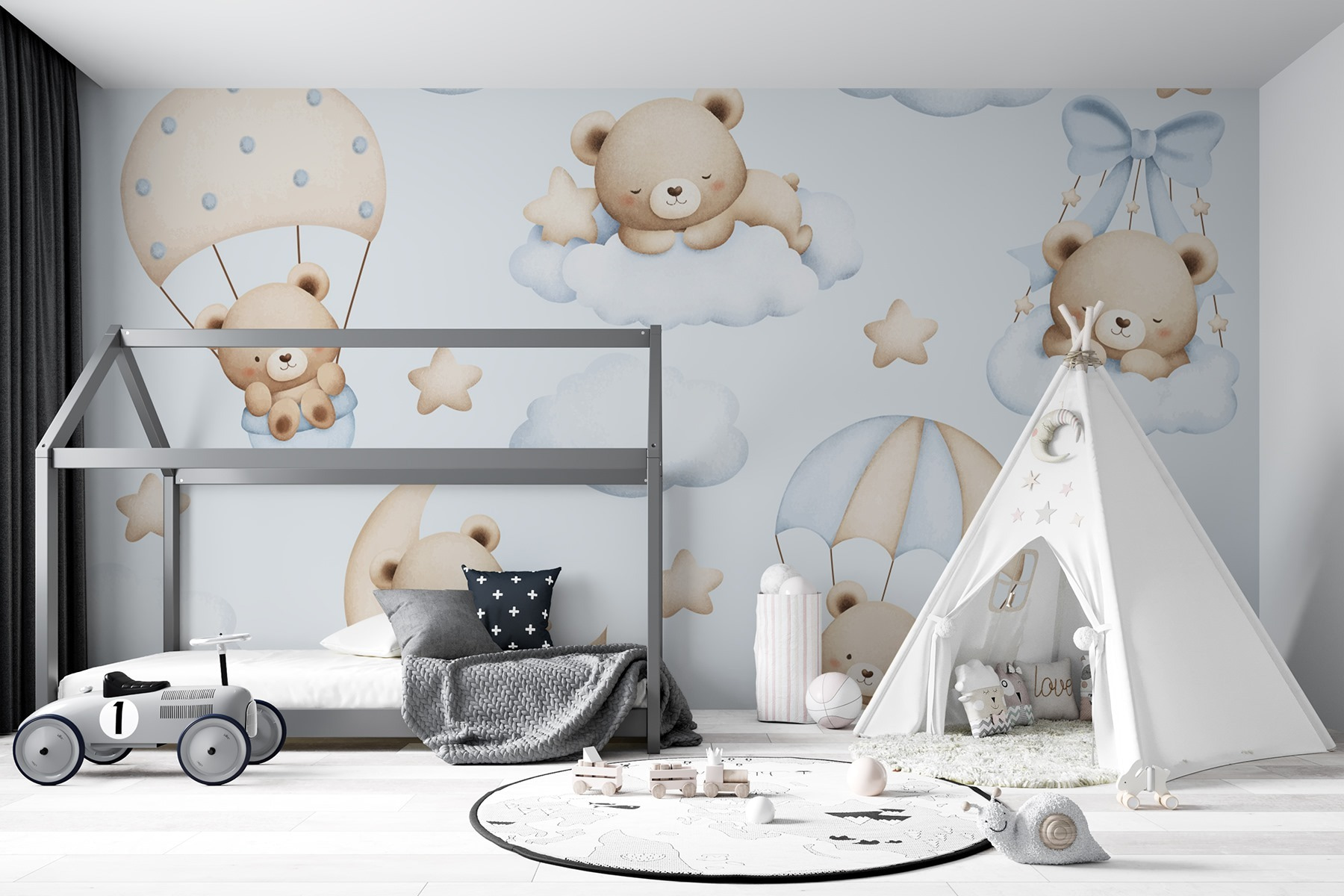 Transformez n’importe quelle pièce en un pays des merveilles douillet avec cette adorable peinture murale représentant de charmants oursons flottant sur des nuages. Sérieusement, qui ne voudrait pas que de petits oursons soient parachutés dans son espace ? Parfait pour les chambres d’enfants ou les salles de jeux, il apporte un sentiment de calme et de joie, comme si chaque ours était en train de vivre une douce aventure. Imaginez les doux rires et les histoires à dormir debout qui flotteront sous ces scènes duveteuses. Il ne s’agit pas seulement d’une peinture murale, mais d’un billet pour un pays de rêve où règnent les câlins et les rires. Alors, prenez un chocolat chaud et laissez-vous envelopper par les vibrations câlines !