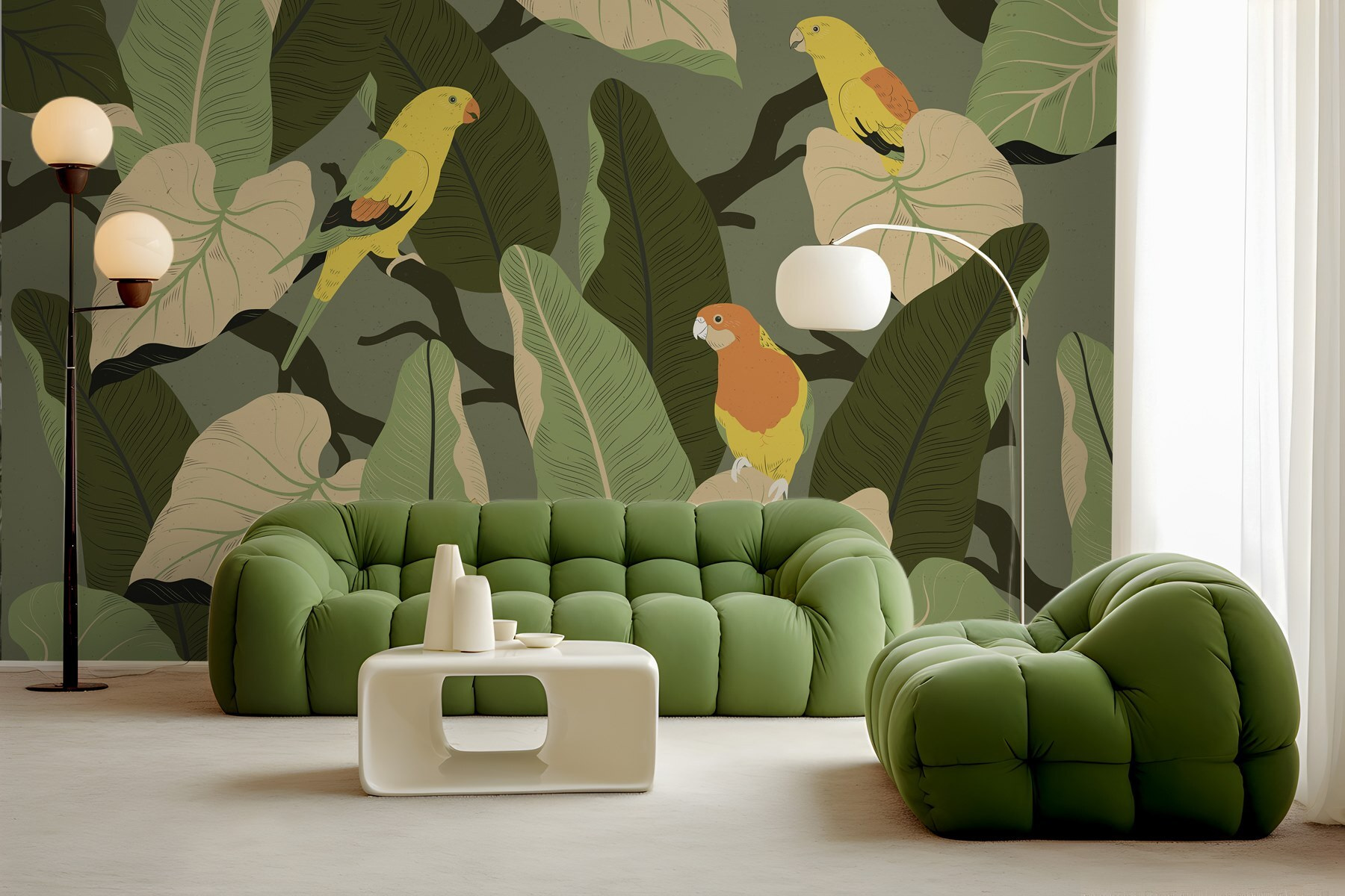 Transformez n’importe quel espace en un paradis luxuriant avec cette peinture murale vibrante d’oiseaux colorés perchés sur des branches feuillues ! Imaginez que vous entrez dans une pièce où les vibrations tropicales circulent comme une douce brise. Ces joyeux amis à plumes semblent chanter, vous invitant à faire une pause et à vous imprégner de la beauté qui les entoure. Parfaite pour un coin lecture ou une salle à manger animée, cette peinture murale apporte une touche de nature à l’intérieur, sans qu’il soit nécessaire d’avoir la main verte ! De plus, elle alimente les conversations et suscite des récits de voyages dans des lieux exotiques. Qui ne voudrait pas se réveiller entouré d’un tel charme ? C’est comme des mini-vacances à la maison !