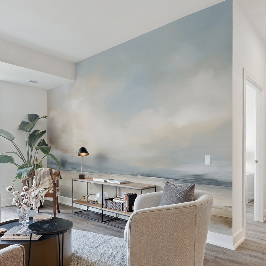 Transformez votre espace avec cette peinture murale sereine, “Paysage avec une étendue d’eau et des nuages”. Imaginez que vous entrez dans une pièce où les couleurs apaisantes chuchotent la tranquillité et où de doux nuages dérivent au-dessus de votre tête. Cette peinture murale vous plonge dans une évasion rêveuse au bord de la mer, idéale lorsque vous n’avez pas de vue sur l’océan à la maison. Imaginez-vous en train de siroter un café, de contempler ce vaste paysage paisible et de sentir votre stress s’évanouir. C’est comme des mini-vacances tous les jours ! Idéal pour un salon ou un coin douillet, il invite à la détente, à la conversation et peut-être même à la rêverie. Qui n’en voudrait pas ?