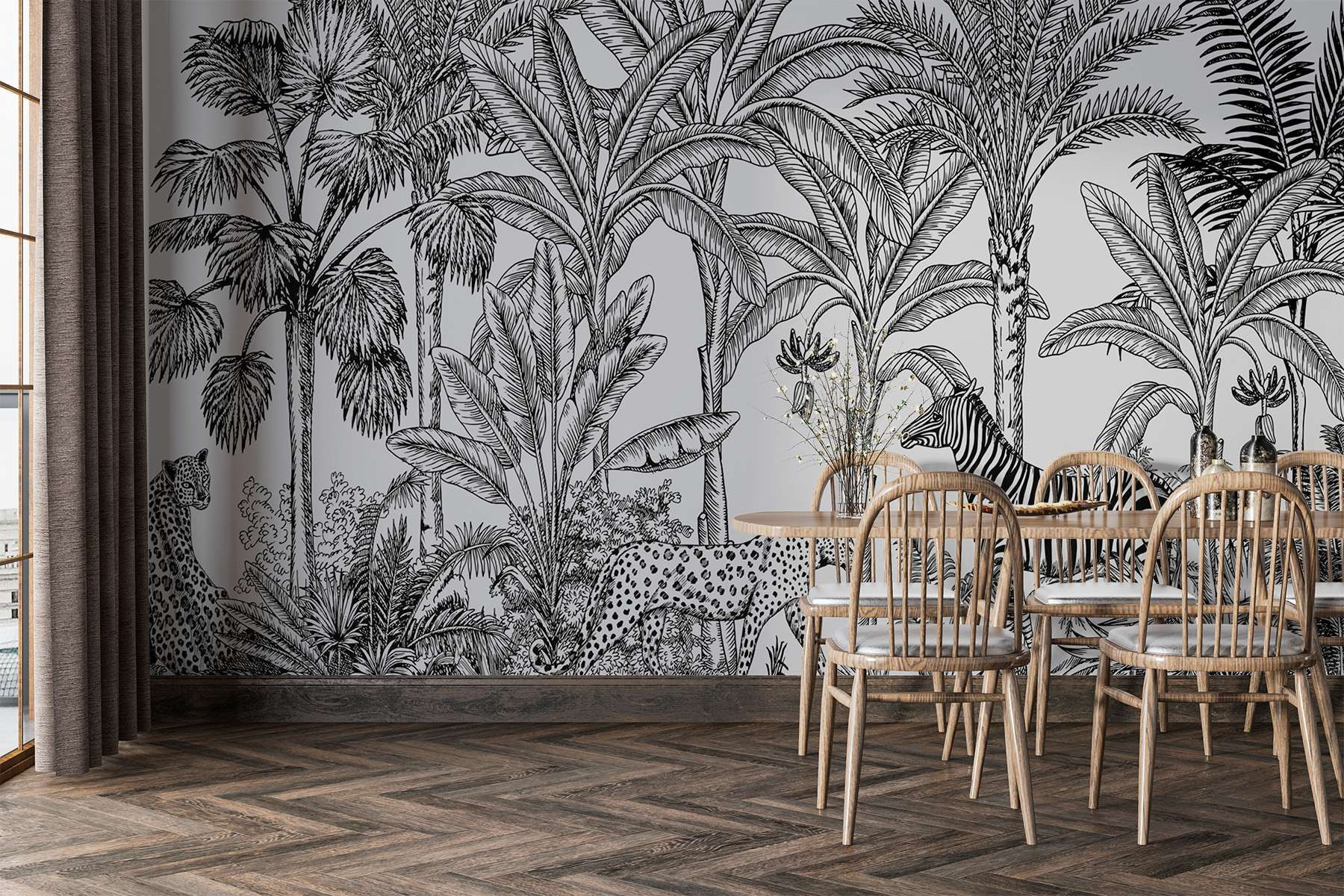 Transformez n’importe quel espace en une aventure sauvage grâce à cette délicieuse peinture murale représentant des zèbres et des léopards se prélassant dans une jungle luxuriante. Imaginez que vous entrez dans votre salon et que vous avez l’impression d’être entré dans un paradis tropical. Les détails complexes des animaux et le feuillage vibrant invitent l’œil à explorer, faisant de chaque coup d’œil une mini-vacance pour les sens.