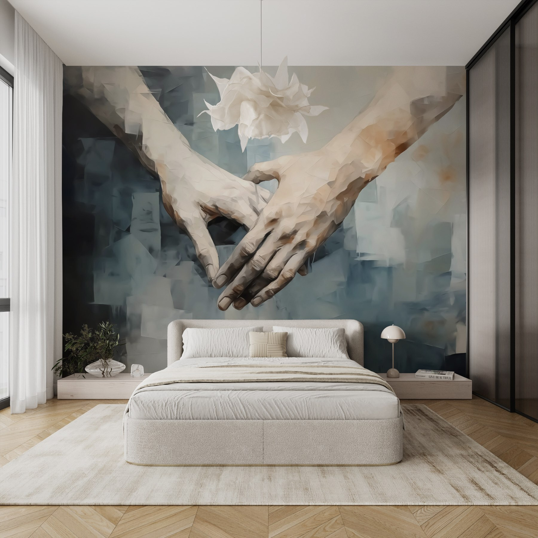 Imaginez que vous entrez dans une pièce à la fois accueillante et tranquille, grâce à cette superbe peinture murale intitulée “Hands Connecting in Gentle Embrace” (Les mains se connectent dans une douce étreinte). L’œuvre d’art évoque la connexion et la chaleur, comme une étreinte pour vos murs. Chaque main semble raconter une histoire, invitant quiconque la voit à réfléchir à ses propres relations.