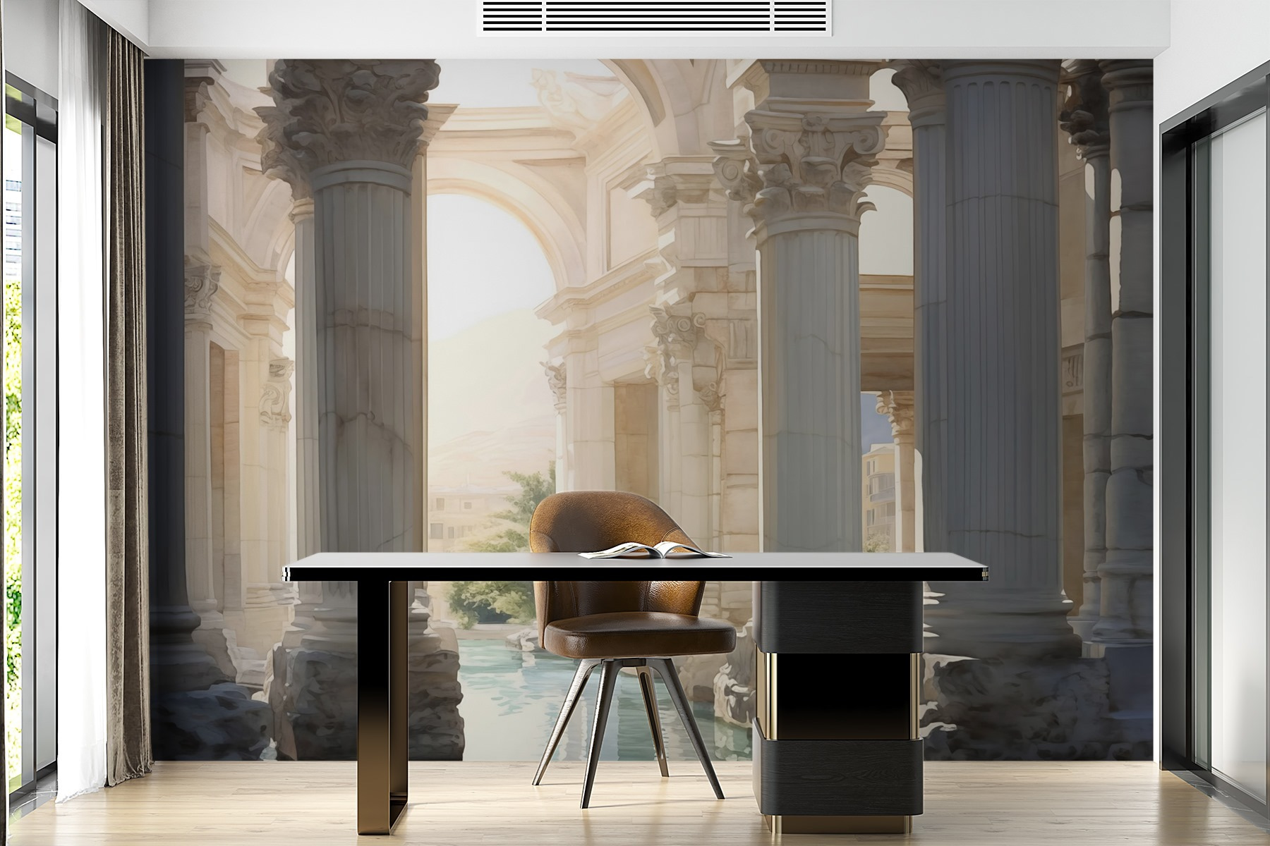 Transformez n’importe quel espace en une évasion sereine grâce à cette superbe peinture murale représentant une scène aquatique paisible encadrée par de grandes colonnes. Imaginez que vous entrez dans votre pièce et que vous avez l’impression d’avoir pénétré dans une oasis de rêve, où la lumière du soleil danse sur l’eau et où les détails architecturaux invitent à la curiosité. Cette pièce murmure des histoires de merveilles anciennes et de retraites paisibles, ce qui la rend idéale pour un salon confortable ou une chambre à coucher apaisante. C’est comme des mini-vacances à chaque fois que l’on jette un coup d’œil vers elle – qui n’en voudrait pas ? Parfait pour les amateurs de décoration unique !