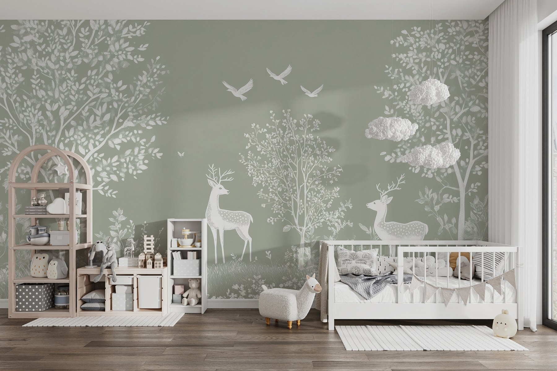 Imaginez que vous pénétrez dans une forêt sereine où la douce beauté de la nature vous invite à faire une pause. Cette peinture murale, qui représente de gracieux cerfs blancs et des oiseaux espiègles au milieu d’arbres luxuriants, fait exactement cela : elle transforme n’importe quelle pièce en une retraite apaisante. Les tons doux donnent une impression d’aération, ce qui est parfait pour les espaces douillets ou un coin lecture tranquille. Imaginez-vous en train de siroter un thé tout en rêvant d’aventures en forêt ou en entendant le bruissement des feuilles. C’est comme si vous rameniez un peu de nature à l’intérieur, les moustiques en moins ! Un moyen facile de mettre un peu de fantaisie et de tranquillité dans la vie de tous les jours. Parfait pour les amoureux de la nature ou pour tous ceux qui ont besoin d’un peu d’évasion.