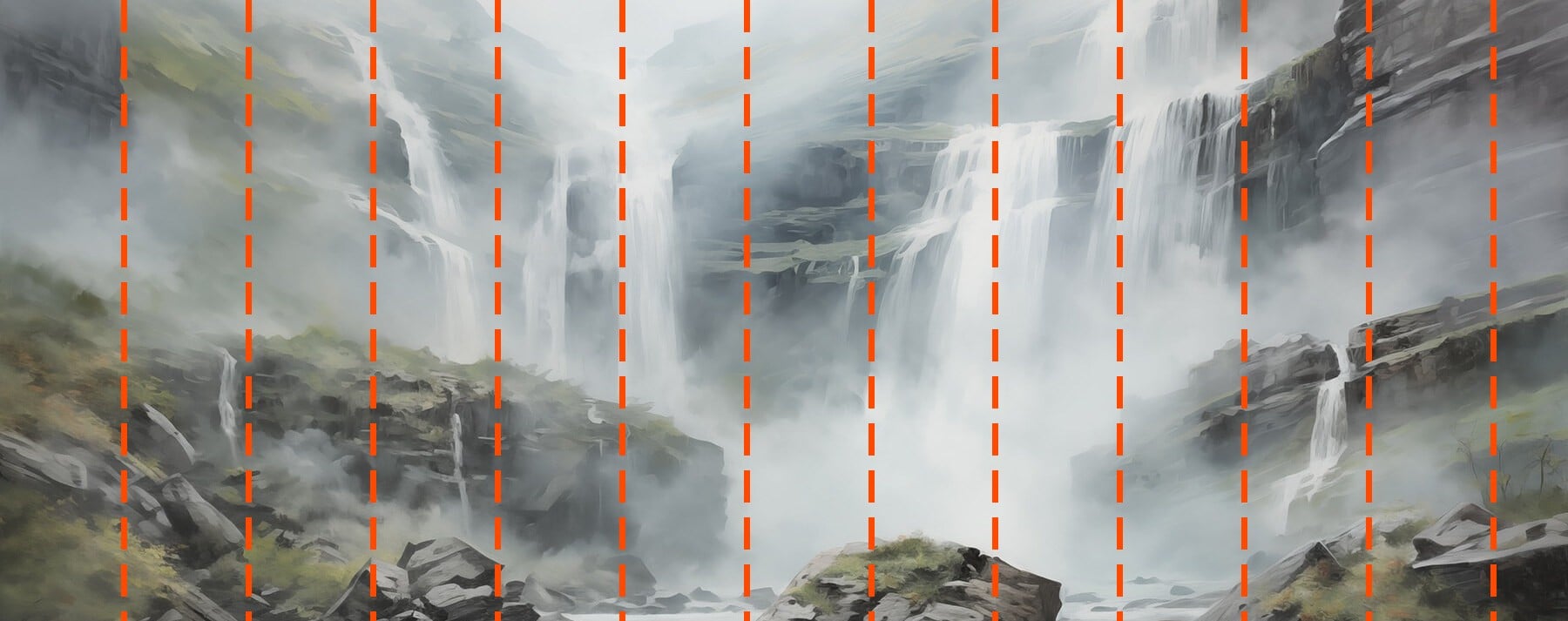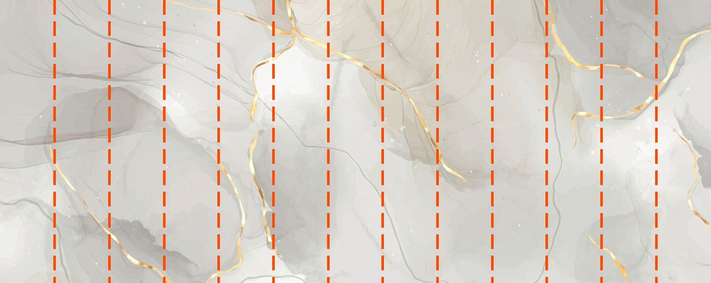 Votre papier peint sera préparé selon les dimensions que vous avez indiquées lors du processus de commande. La toile sera divisée en sections pratiques, chacune d’une largeur maximale de 50 cm.