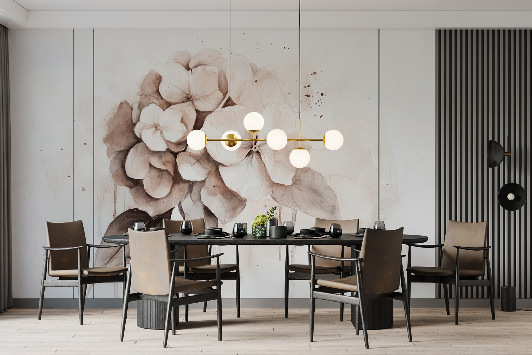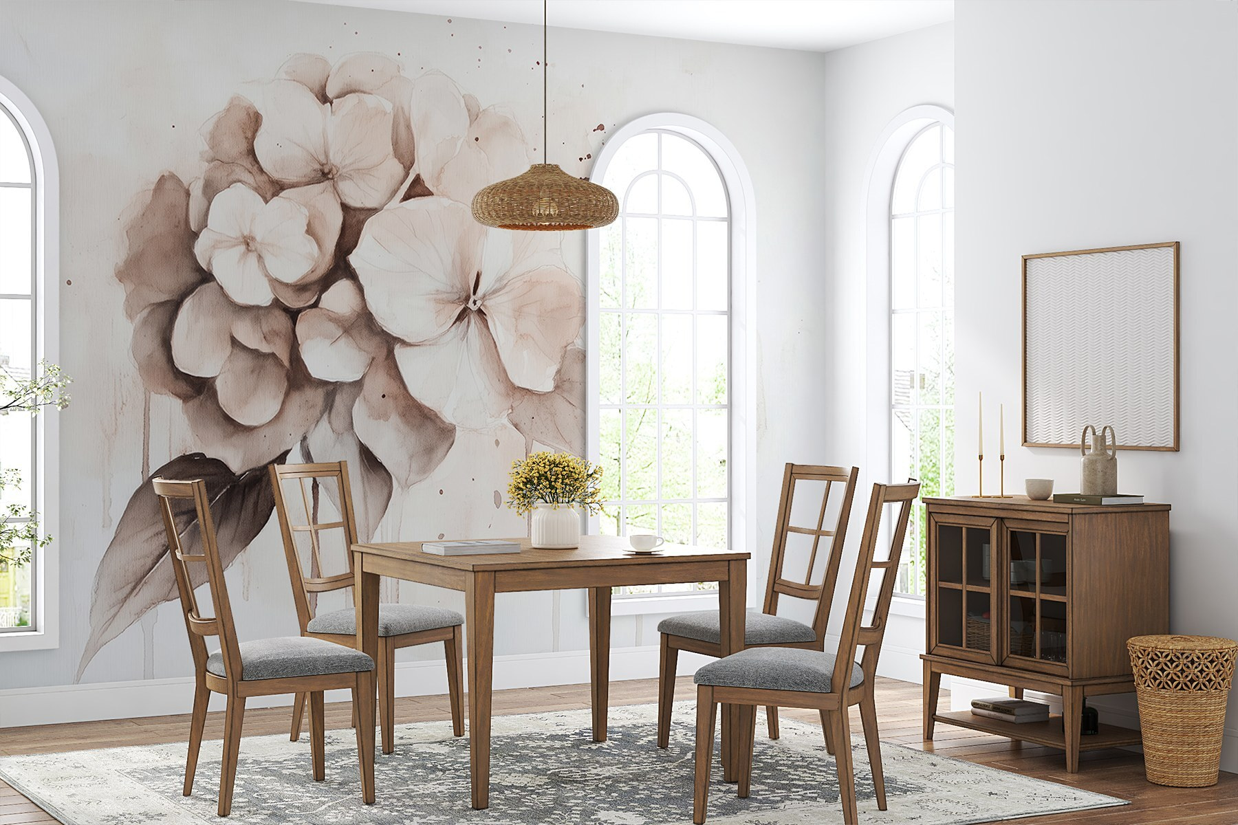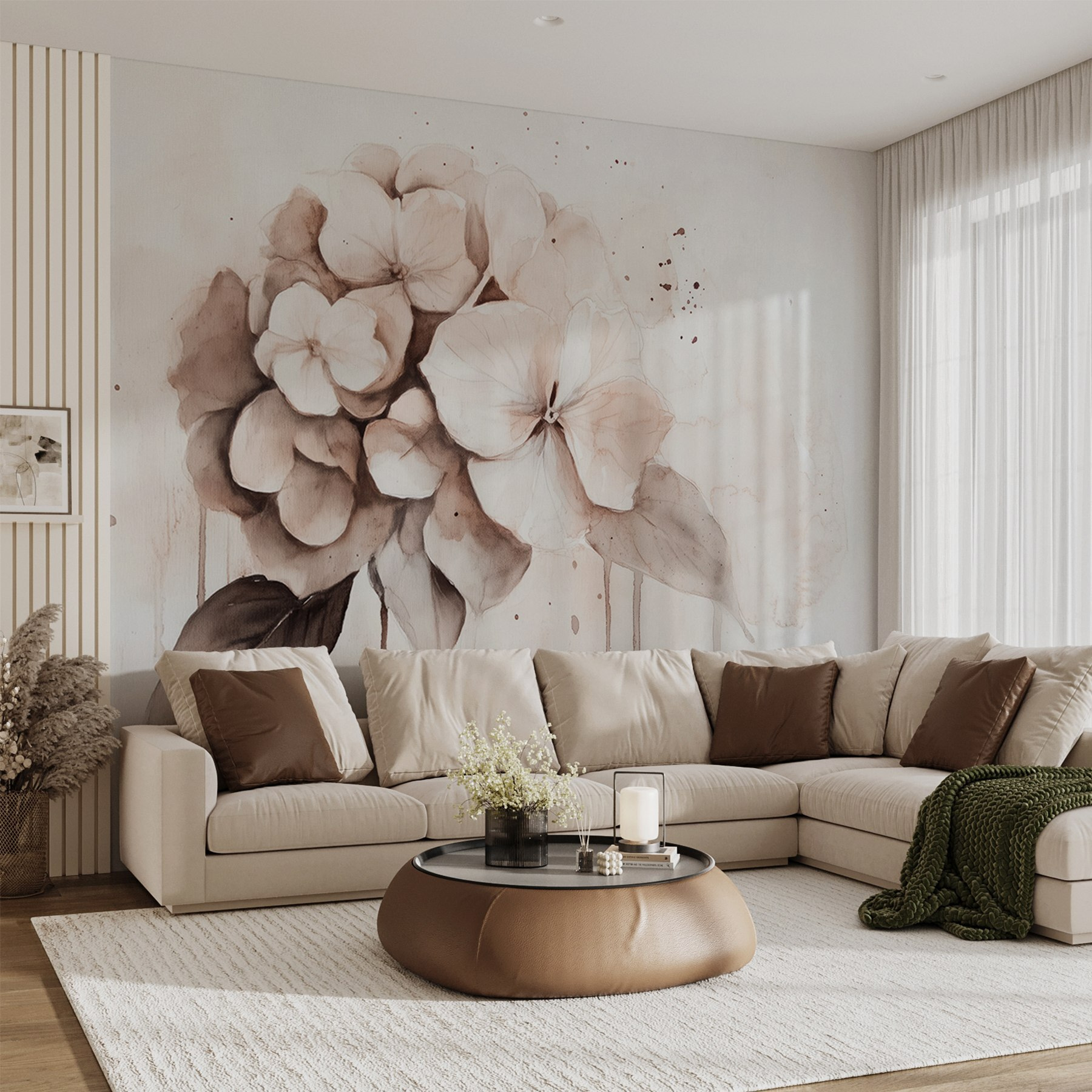 Transformez un mur terne en un lieu d’épanouissement avec cette peinture murale enchanteresse de fleurs délicates. Imaginez que vous vous réveillez chaque jour, accueilli par de doux pétales et des couleurs sourdes qui murmurent la tranquillité. C’est comme si vous faisiez entrer une partie d’un jardin serein dans votre espace. Parfait pour un coin douillet ou un mur d’apparat, ce motif apporte une ambiance apaisante sans pour autant submerger les sens. Vos amis penseront peut-être que vous avez la main verte ! De plus, il se marie à merveille avec toutes sortes de décors, des plus rustiques aux plus modernes. Capturez cette sensation rafraîchissante de l’extérieur à l’intérieur – vos murs méritent ce petit plaisir.