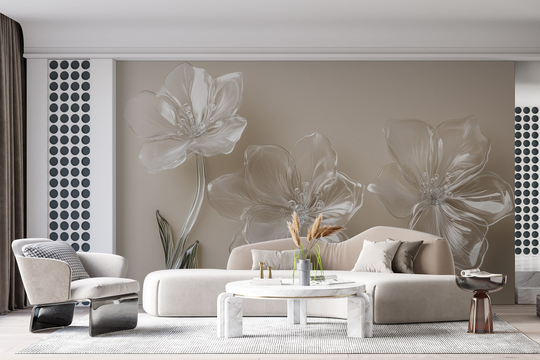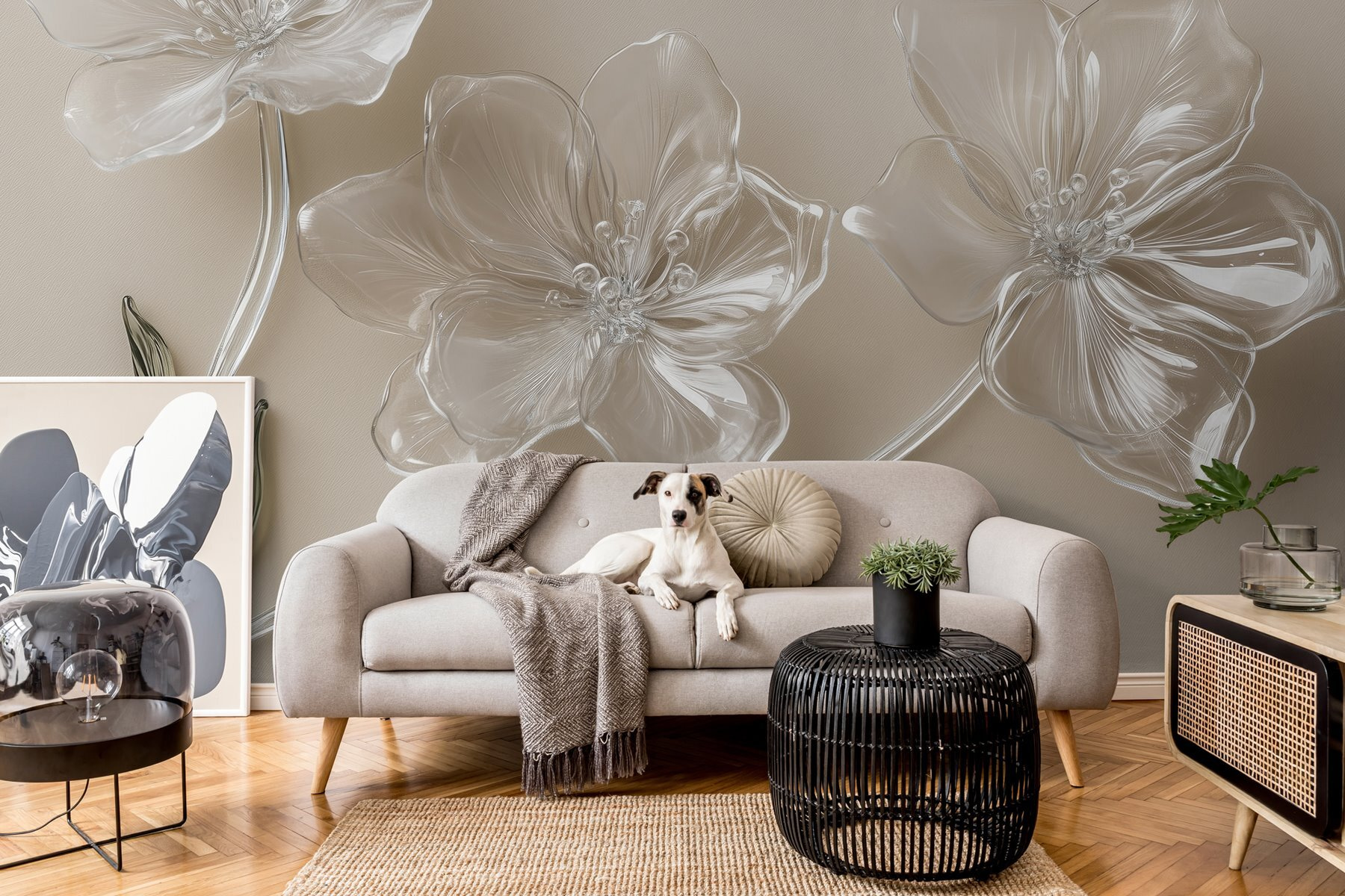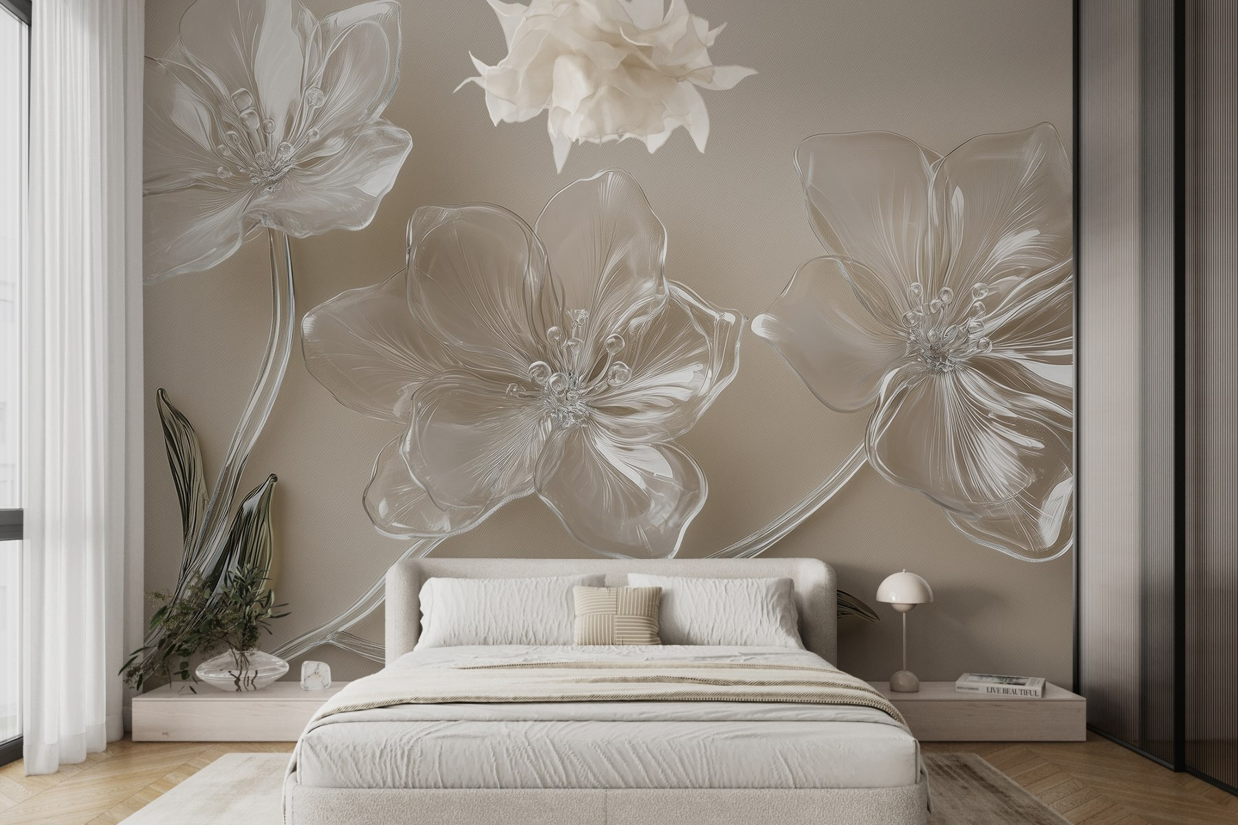 Transformez n’importe quel espace avec la beauté enchanteresse de la peinture murale “Fleurs en verre sur une surface blanche”. Ces jolies fleurs semblent flotter sur vos murs, apportant une touche de nature à l’intérieur sans pollen gênant. Imaginez que vous sirotiez votre café du matin, entouré de ces pétales doux et élégants – c’est comme si vous aviez un jardin qui fleurit toute l’année ! Parfaite pour égayer un salon ou ajouter une touche spéciale à un coin douillet, cette peinture murale invite à la chaleur et à la créativité. Pensez à tous les compliments que vos amis feront à votre style lorsqu’ils verront cette superbe pièce !
