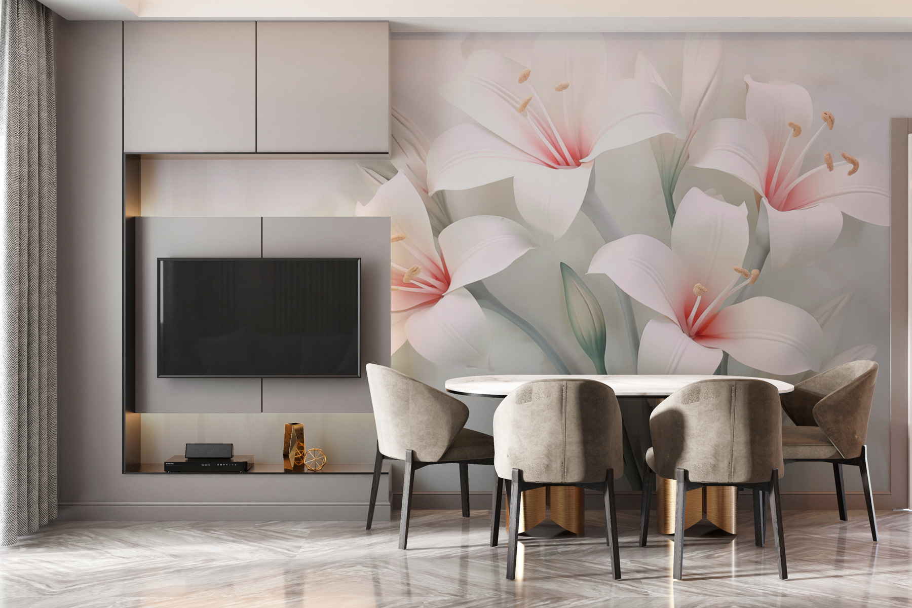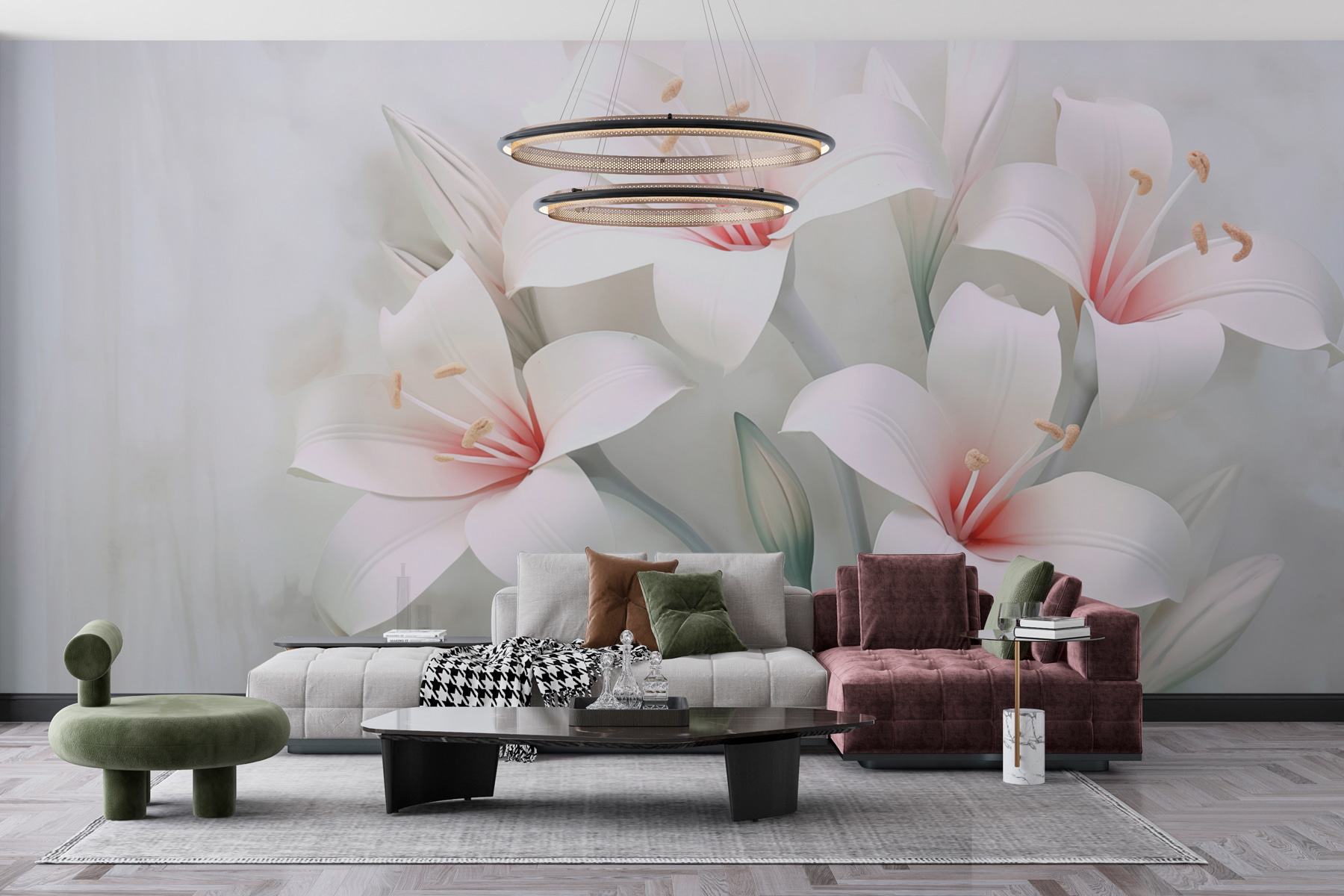 Voyez exactement à quoi ressemblera votre espace avec un nouveau papier peint avant d’acheter. Visualisation professionnelle par des designers experts, sans aucun coût ni obligation d’achat.