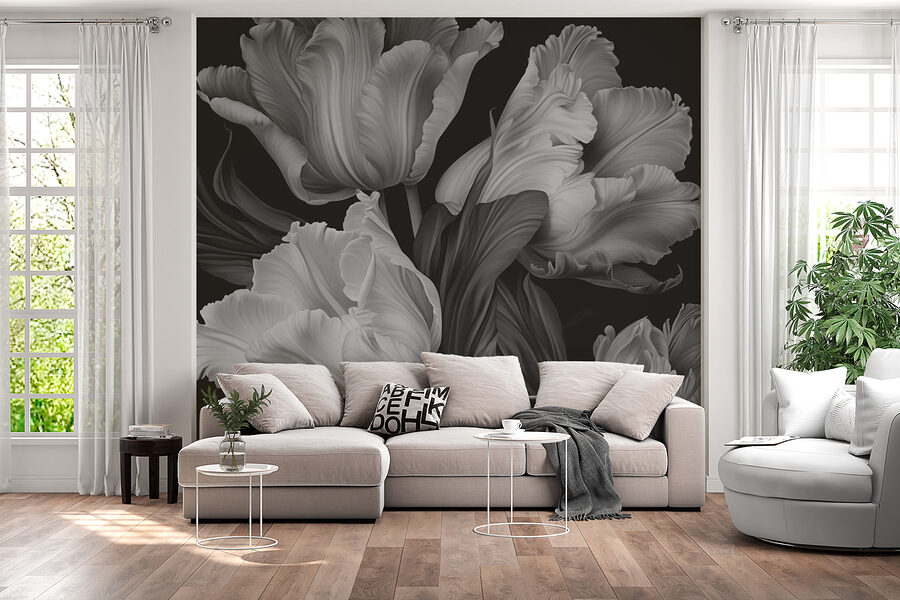 Transformez n’importe quelle pièce avec cette superbe peinture murale représentant d’élégantes tulipes dans des tons monochromes. C’est comme si vous aviez une œuvre d’art sur votre mur sans avoir à payer le prix d’entrée au musée. Imaginez-vous en train de vous installer confortablement avec une boisson chaude, en contemplant ces tulipes qui se balancent gracieusement – c’est à la fois apaisant et saisissant. Le contraste entre le noir et le blanc ajoute une touche dramatique, parfaite pour les journées maussades où l’on a envie de se blottir à l’intérieur. Les invités peuvent même s’arrêter, hypnotisés, se demandant s’ils sont entrés dans un pays des merveilles. La simplicité de l’ensemble est d’un chic rafraîchissant – qui n’aime pas cela ? Cette peinture murale a du charme, de la sophistication et une touche de fantaisie. C’est un art mural qui s’impose.