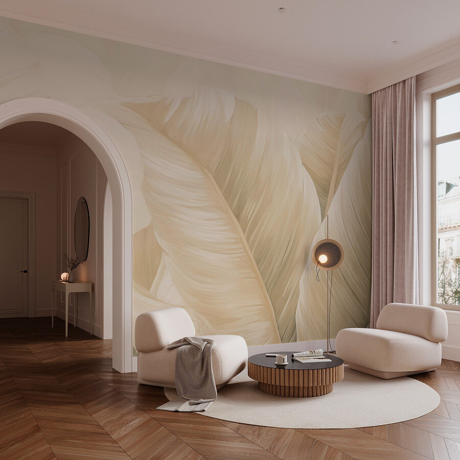 Imaginez que vous pénétrez dans un monde de textures douces et de tons sourds, où chaque regard sur le mur ressemble à une douce étreinte. Cette peinture murale, avec son motif apaisant de feuilles de palmier, évoque les paradis tropicaux tout en ancrant n’importe quel espace par sa présence sereine. Imaginez des soirées douillettes, des lumières chaudes et ce mélange parfait de nature et de calme. Les amis pourraient s’arrêter au milieu d’une conversation, captivés par la beauté discrète du mur. C’est comme si vous faisiez entrer un morceau de forêt tranquille dans votre maison, les moustiques en moins ! Parfait pour les salons, les chambres à coucher ou même les petits coins qui attendent un peu d’amour.