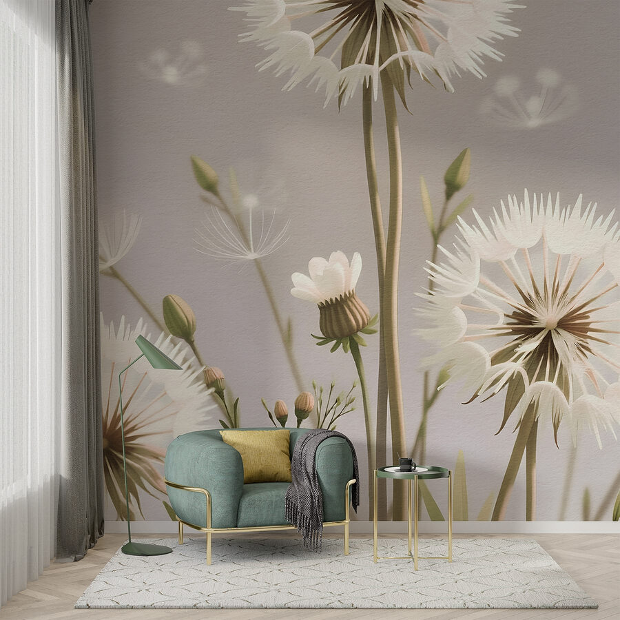 Transformez votre espace avec la peinture murale “Delicate Blooms in Soft Palette”. Ce magnifique motif apporte une touche de nature à l’intérieur, avec de jolis pissenlits et de douces fleurs. Imaginez que vous vous réveillez et que vous êtes accueilli par cette œuvre d’art apaisante – c’est comme un doux murmure venant du jardin !