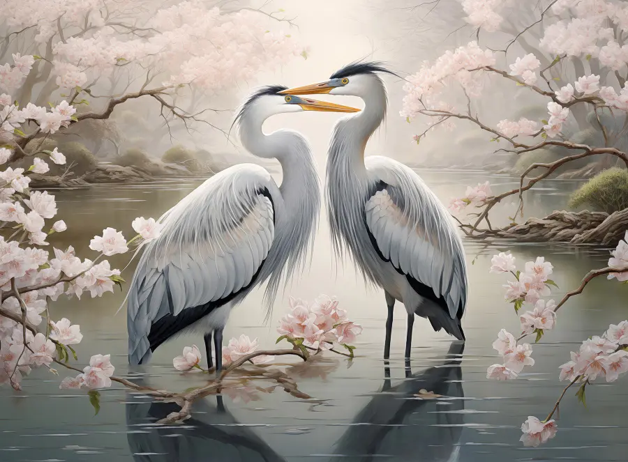Transformez votre espace avec cette peinture murale enchanteresse représentant un couple d’oiseaux blancs gracieux se tenant dans une eau sereine, entourés de fleurs roses délicates. C’est comme si vous aviez une partie d’un jardin japonais tranquille chez vous ! Imaginez-vous en train de siroter un thé alors que la lumière du soleil danse sur la surface de l’eau, jetant des reflets amusants. Les tons doux de l’aquarelle créent une ambiance accueillante et confortable, parfaite pour un coin lecture ou une retraite paisible. C’est un joli rappel de la beauté de la nature, et honnêtement, qui ne voudrait pas d’un peu de romantisme à plumes sur ses murs ? Lumineuse, douce et tout à fait charmante, cette peinture murale ne manquera pas d’attirer l’attention, tout comme ces oiseaux !