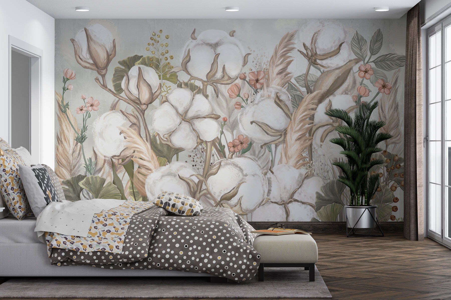 Transformez vos murs avec la peinture murale “Fluffy Cotton Blooms in Soft Hues”. Imaginez que vous pénétrez dans un jardin serein où la douceur des fleurs de coton murmure de douces paroles. Ce motif est un doux rappel de la beauté de la nature, parfait pour créer une ambiance chaleureuse. Les verts subtils et les tons neutres chauds donnent l’impression d’être au printemps tout au long de l’année – qui n’en voudrait pas ? Imaginez-le dans une chambre d’enfant, ou peut-être dans un coin lecture relaxant. Ne sentez-vous pas l’air frais ? Cette peinture murale ne se contente pas de décorer, elle vous invite à faire une pause, à respirer et à apprécier la beauté qui vous entoure. Croyez-nous, même votre mur vous remerciera !