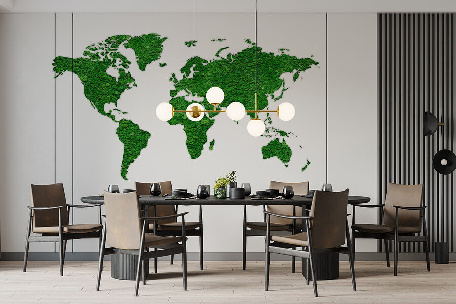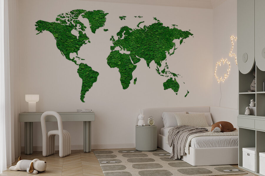 Transformez votre espace avec cette superbe peinture murale représentant une carte du monde entièrement composée de plantes vertes luxuriantes. C’est comme si vous apportiez une partie de la nature à l’intérieur – aucun arrosage n’est nécessaire ! Imaginez vous installer dans une pièce où les continents sont faits de verdure vibrante. Cela suscite la curiosité et la conversation, ce qui est parfait pour les moments où l’on se demande où se trouve cet endroit. De plus, elle dégage une atmosphère apaisante, comme une grande bouffée d’air frais. Que ce soit dans un salon ou un bureau, cette peinture murale ne manquera pas d’inspirer l’envie de voyager. Qui aurait cru que la décoration pouvait être aussi aventureuse ?
