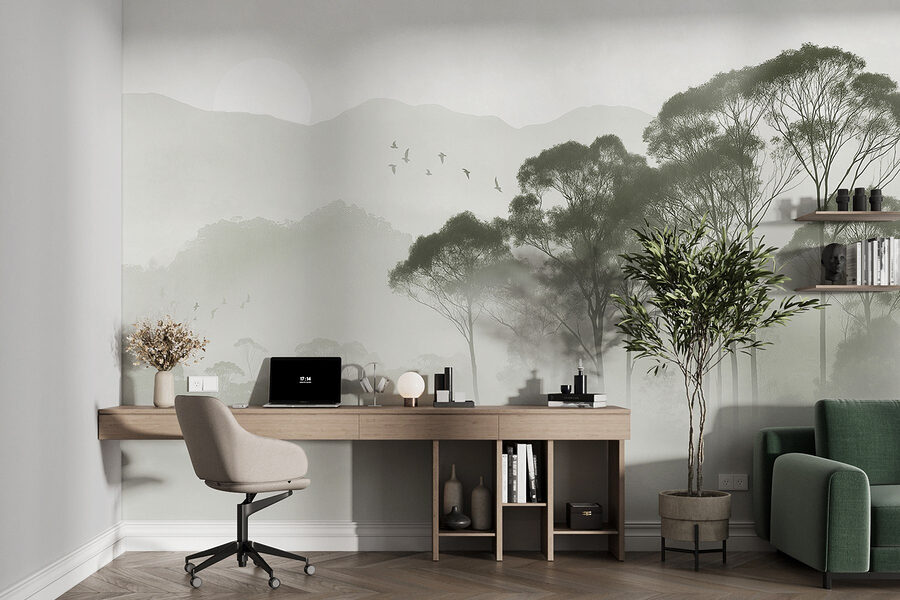 Transformez votre espace avec la peinture murale enchanteresse “Oiseaux volant au-dessus des arbres”. Imaginez que vous pénétrez dans un matin brumeux, où de douces nuances de vert jouent avec le gris doux, créant une toile de fond sereine pour ces moments de rêve. C’est comme si la nature avait chuchoté un secret à votre chambre ! Imaginez : vous vous réveillez et vous êtes accueilli par ces oiseaux en plein vol, comme s’ils vous invitaient à les rejoindre. Cette peinture murale se fond sans effort dans un décor douillet, ce qui en fait une évasion parfaite sans quitter la maison. De plus, qui n’aime pas l’ambiance apaisante d’une forêt, n’est-ce pas ? Qu’elle ajoute de la chaleur à un coin lecture ou qu’elle insuffle de la vie à un couloir terne, elle ne manquera pas d’inspirer un peu d’envie de voyager. Allez-y, laissez vos murs exprimer votre amour de la nature !