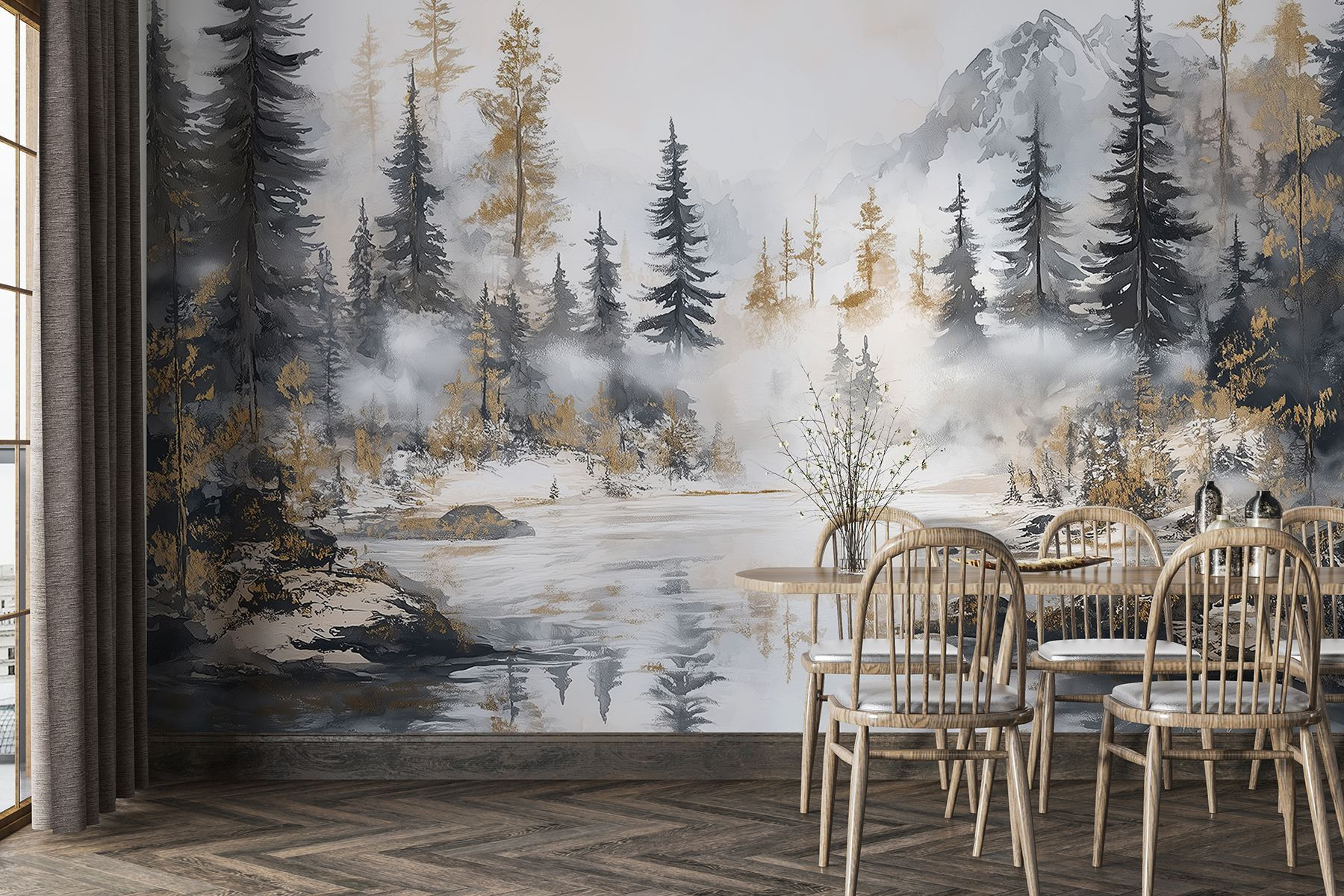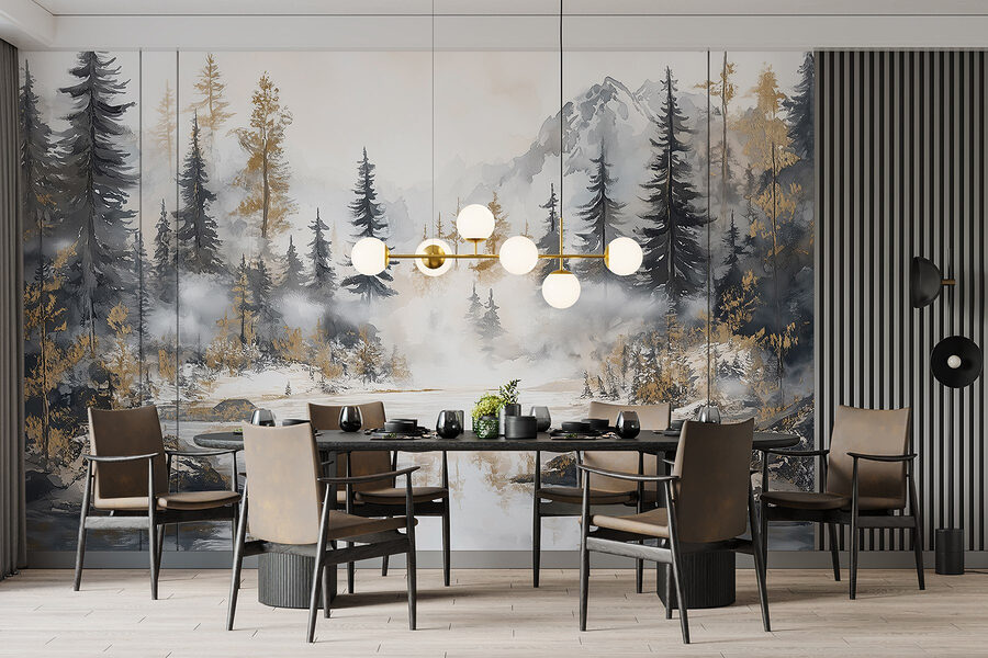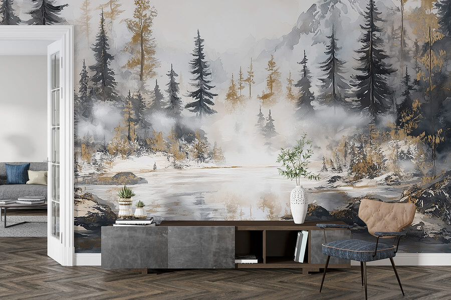 Transformez votre espace en un lieu d’évasion serein grâce à cette superbe aquarelle murale représentant une forêt et des montagnes. C’est comme si vous apportiez le calme de la nature à l’intérieur, sans les piqûres d’insectes et les chaussures boueuses. Imaginez des soirées douillettes passées au coin du feu (ou simplement une bougie vacillante) tout en contemplant ces arbres embrumés et ces sommets imposants – qui a besoin de chaussures de randonnée quand on a cette beauté au mur ? Parfaite pour un salon ou un coin lecture paisible, cette fresque murmure la détente. Il s’agit d’un rappel artistique à respirer profondément et à laisser la nature faire sa magie, directement dans votre maison.