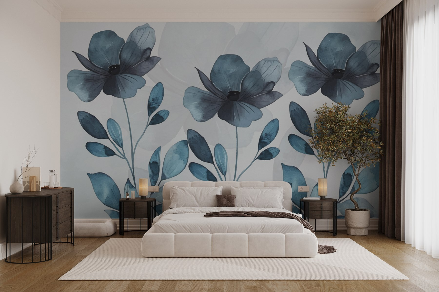 Apportez une touche de tranquillité dans n’importe quelle pièce avec cette superbe peinture murale représentant des fleurs et des feuilles bleues. Imaginez que vous entrez dans un espace où les teintes douces apaisent l’âme et stimulent la créativité. C’est comme si vous enveloppiez vos murs d’une douce brise. Ces aquarelles ont le don de rendre chaque coin un peu plus paisible et accueillant. Qu’il s’agisse d’un coin lecture confortable ou d’une entrée animée, cette peinture murale ne manquera pas d’attirer les regards et de susciter des conversations. Parfaite pour les personnes qui apprécient la beauté sans en faire des tonnes, c’est la touche qu’il vous faut pour rehausser votre décoration. Qui ne voudrait pas de fleurs qui ne se fanent jamais ?